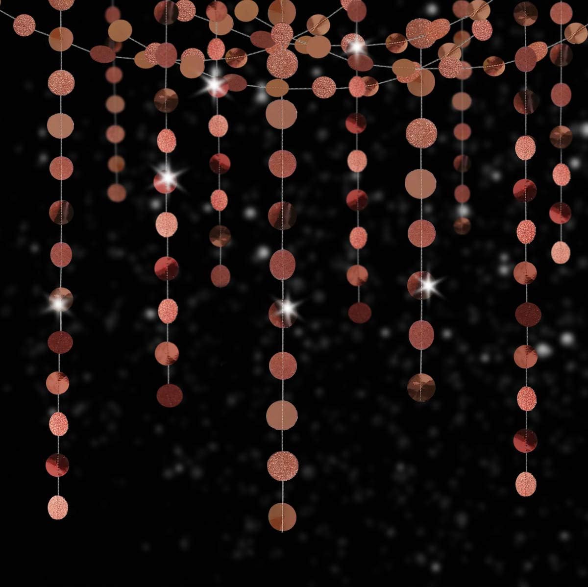 - 【Widely used】Our rose gold paper circle dots garlands can be used for many occasions. Perfect for birthday party, bachelorette party, engagement party, bridal shower, wedding, baby shower, tea party, housewarming party, classroom Decoration, Christmas, New Year party, valentine's day, circle dots theme party, and so on. You can hang the garlands on walls, tables, windows, branches, or anywhere you like