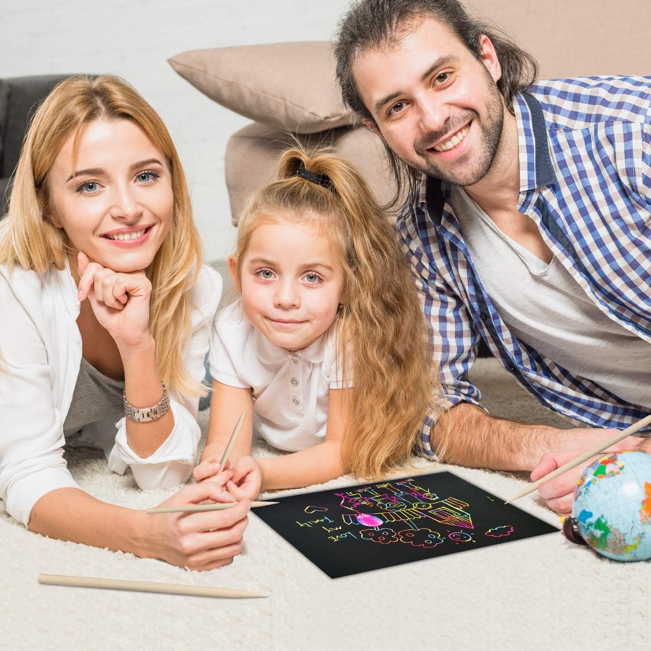 - Wide Application for Colorful Life: Ideal for scratch art party favors for kids 4-8,birthday party games, festival decorations, camp, rain day, family fun day, art class, kid art supplies, school projects, day cares on the holiday, creativity activity in the classroom, car, train, plane trip and outdoors for a fun day. This toys art makes an excellent art supplies for kids 4-6 activity or grown-up artists. Throw this toddler craft set in your backpack, bag or even your pocket and create whenever inspiration strikes