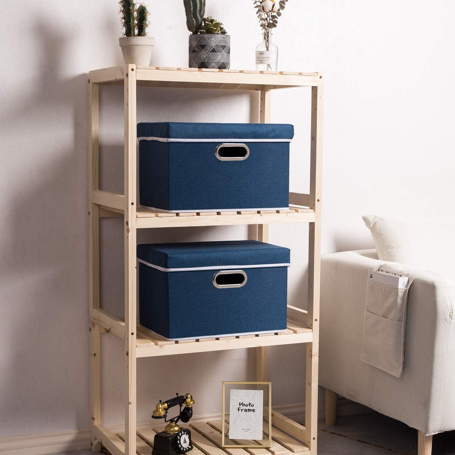PRANDOM Collapsible Storage Bin with Lid [3-Pack] Fabric Foldable Storage Box Organizer Container Basket Cube with Cover for Home Bedroom Closet Office Nursery Royal Blue(14.9x9.8x9.8)