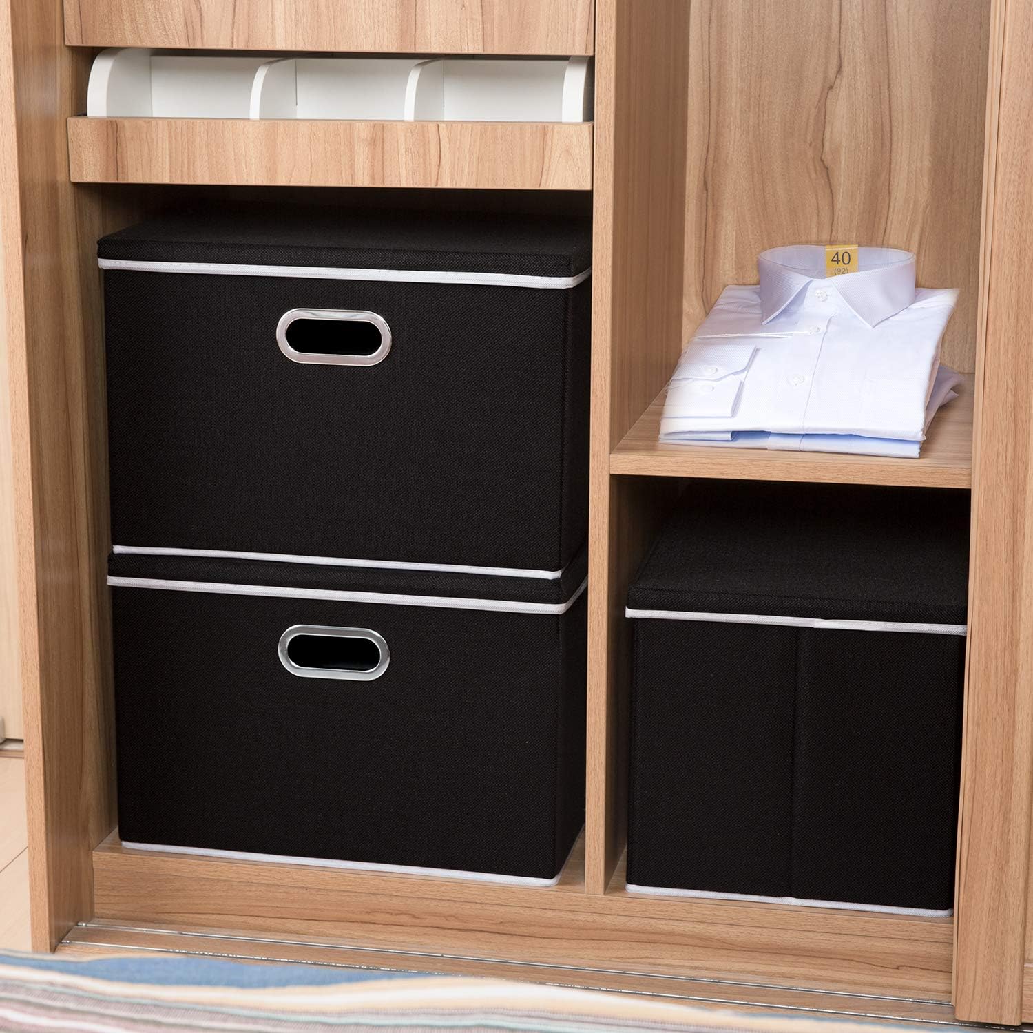 PRANDOM Large Foldable Storage Boxes with Lids [5-Pack] Organizer Containers Baskets Cube with Cover for Home Bedroom Closet Office Black17.7x11.8x11.8 For 6+ Year Old Boys and Girls
