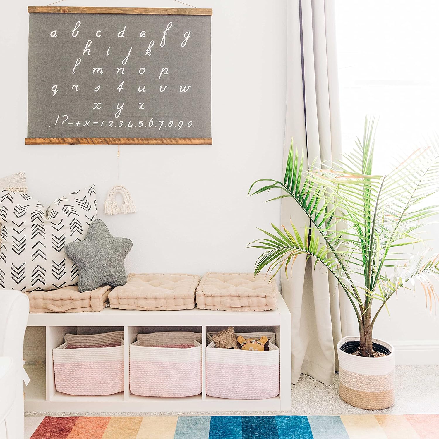 - All-Purpose Cube Storage Baskets – These 15” x 10” x 9” rope storage baskets are ideal for keeping your everyday home life more organized and provide plenty of compact storage space for arts and crafts, classroom decor, kid’s toys, or nursery storage and room accessories