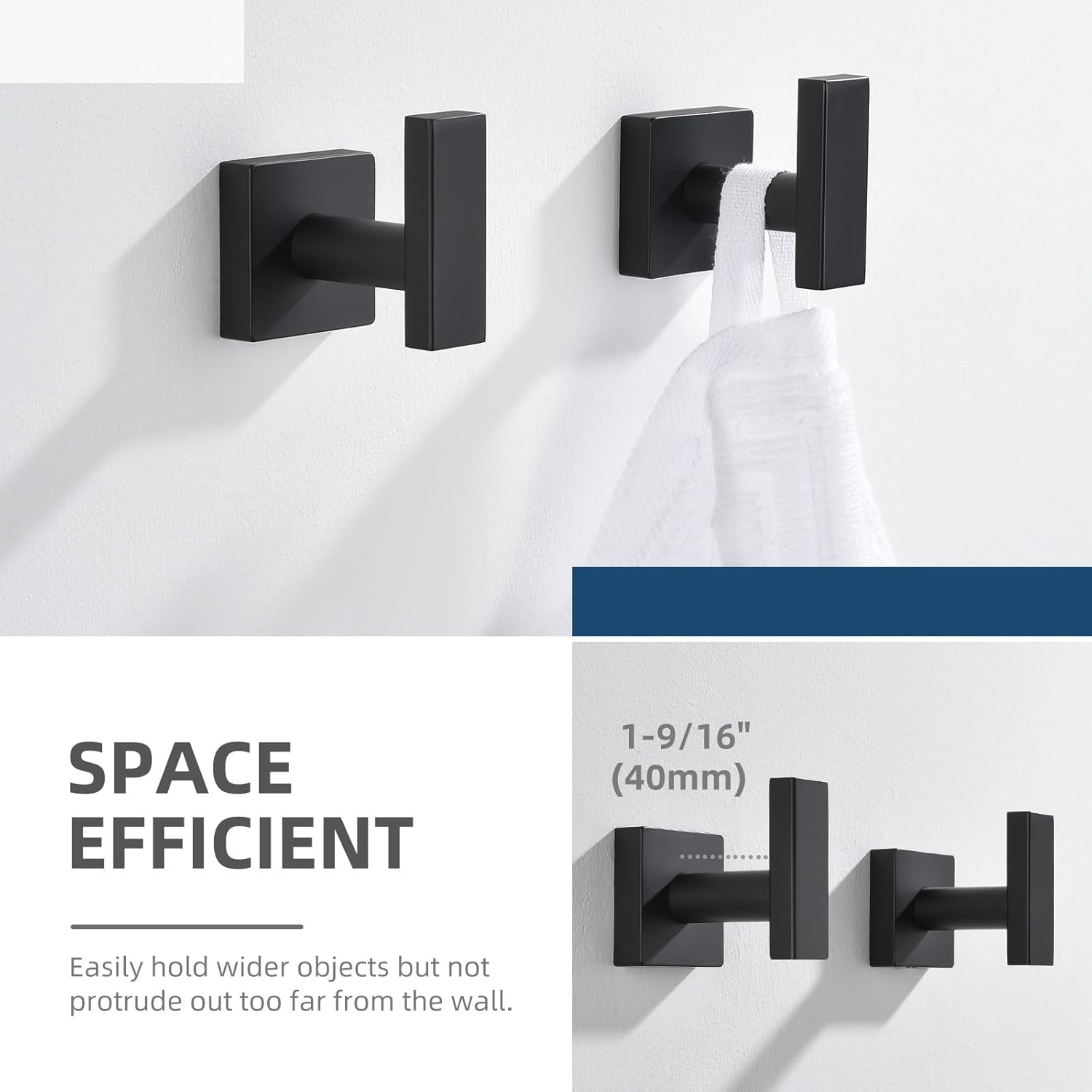 Angle Simple Bathroom Towel Hooks, Stainless Steel Robe Coat Hooks for Wall, Matte Black, 2 Pack