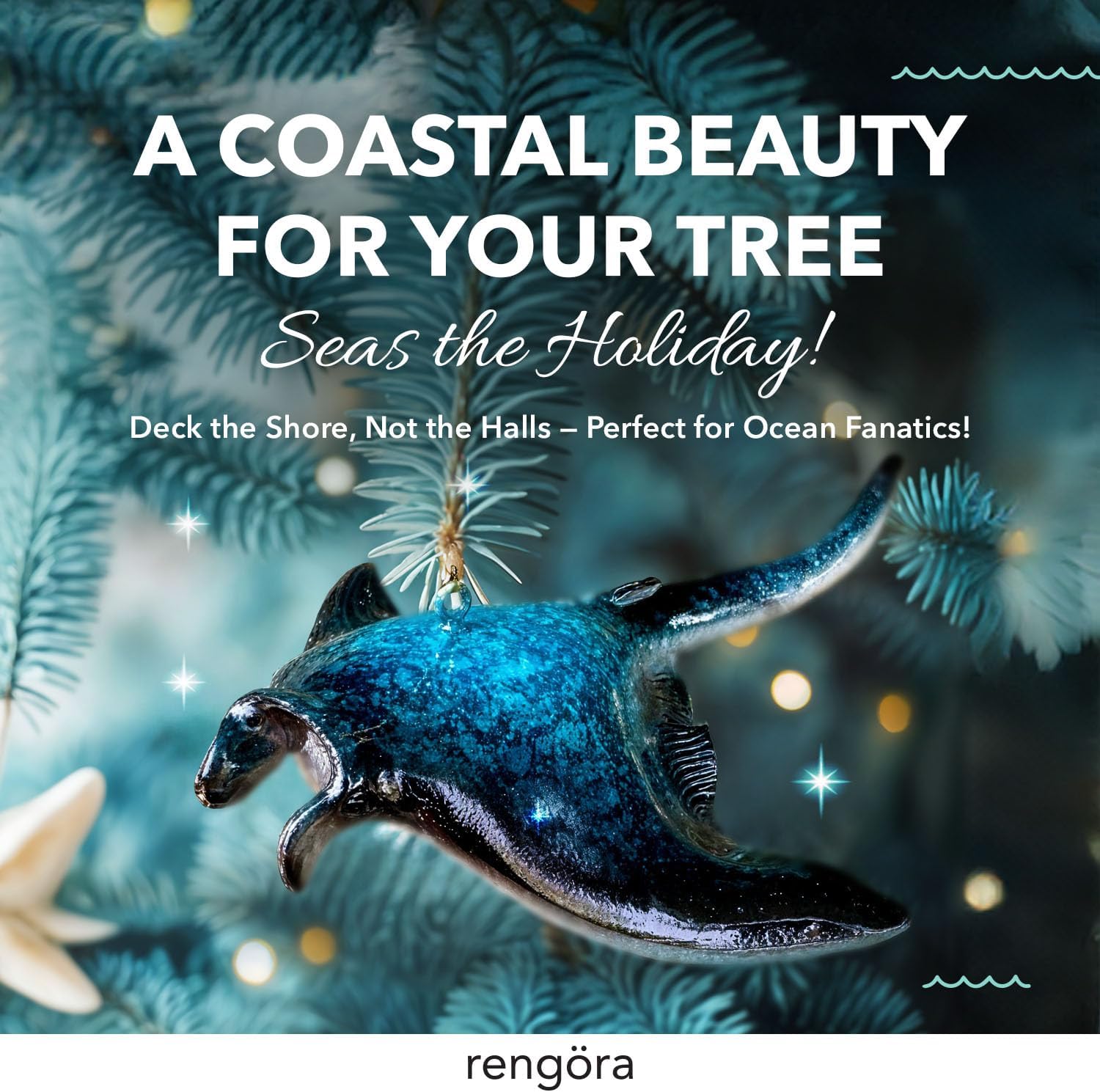 Hand-Painted Beach Christmas Ornament – Coastal Tree Decoration for Ocean Lovers – Unique Nautical Ornament for Christmas Tree or Stocking Stuffer Gift (Manta Ray)