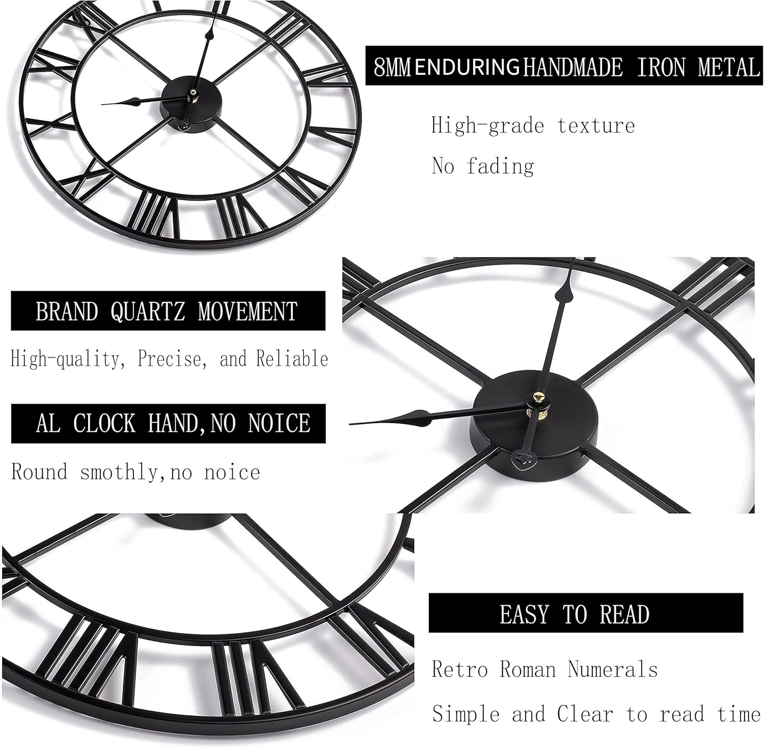 - 【Vintage and Retro Design】 - Not just for telling time, large wall clocks are perfect for adding artful appeal to your wall. Suitable for bedroom, school, office, living room, kitchen or commercial applications. Perfect for decorating any home decoration style. Make this oversized metal clock the focal point of any room!