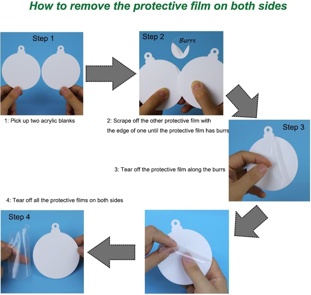 - Easy to Use: these acrylic Christmas ornament blanks are laser cutting, smooth edges, all acrylic ornaments have a protective film on both sides, just tear off the film before use. Each acrylic ornament comes with a hole, which is convenient for you to hang it on the place that you want.