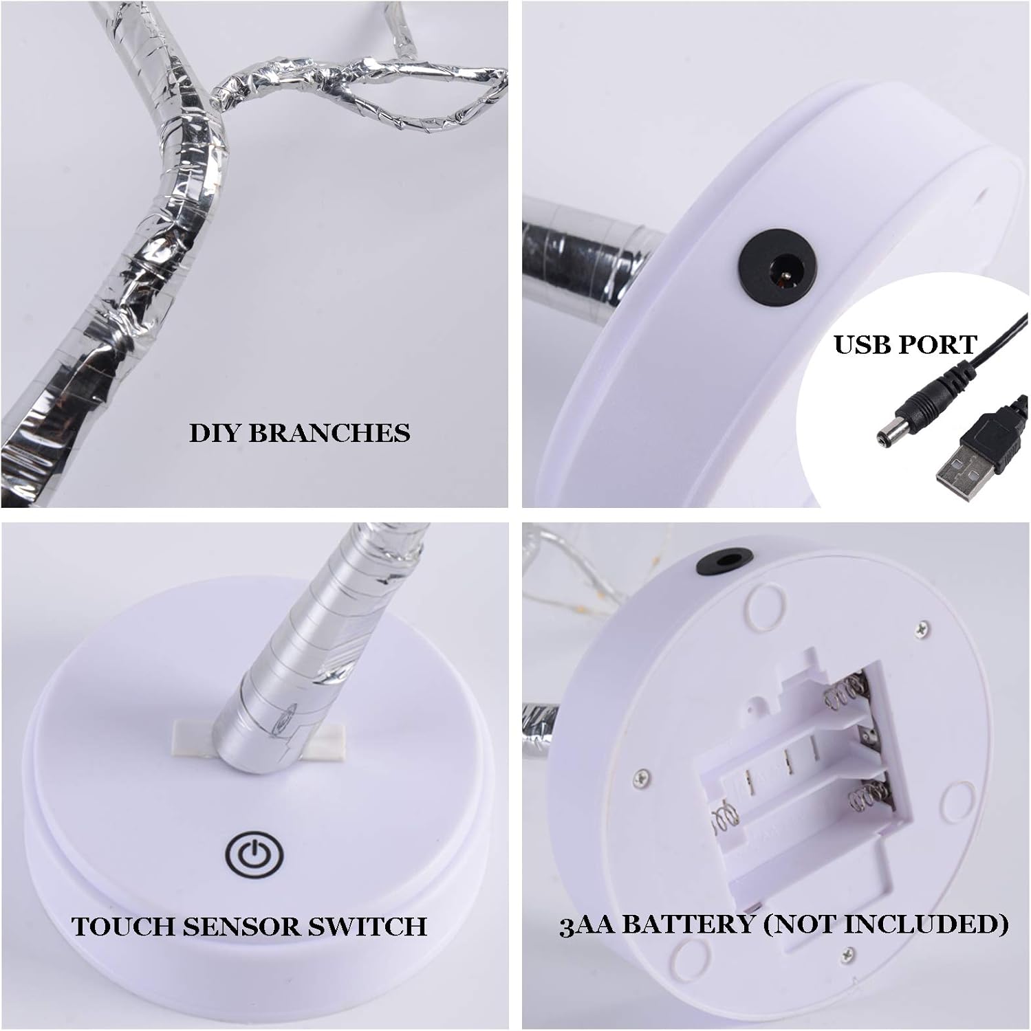 - ➤【USB And Battery Powered】This tree light can be powered by USB or 3 AA batteries (not included), you can flexibly choose any where, easy to use. Using 3 AA batteries, you can move the decoration at will; use USB to save electricity, money and environmental protection. Important: Please unplug the USB cable when using the battery to avoid damage!