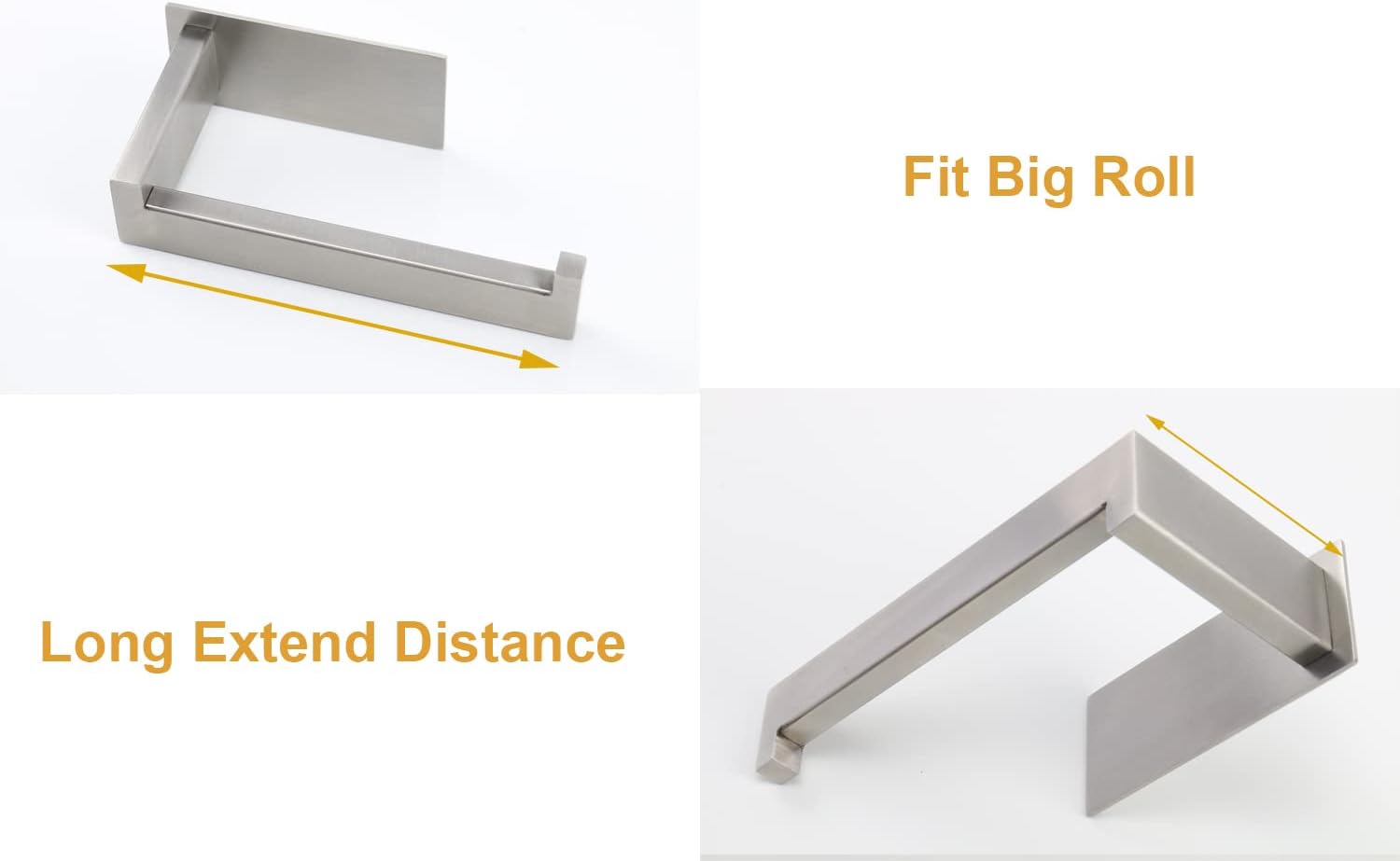 - DURABILITY & RUSTPROOF: Toilet paper holder construct of 304 stainless steel. Suitable for moisture bathrooms and fumes kitchens to used. Moreover, it large area adhesive side can bear weight up to 16 LB.