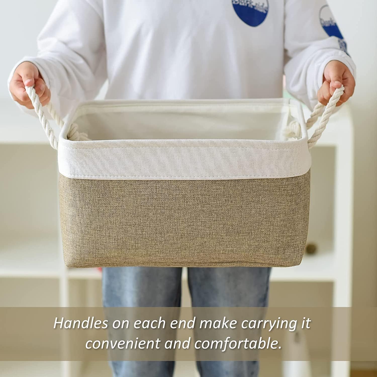 - Each basket has cotton rope handles on both sides for easy transport make everything easy to grab and move.Handles on each end make carrying it convenient and comfortable