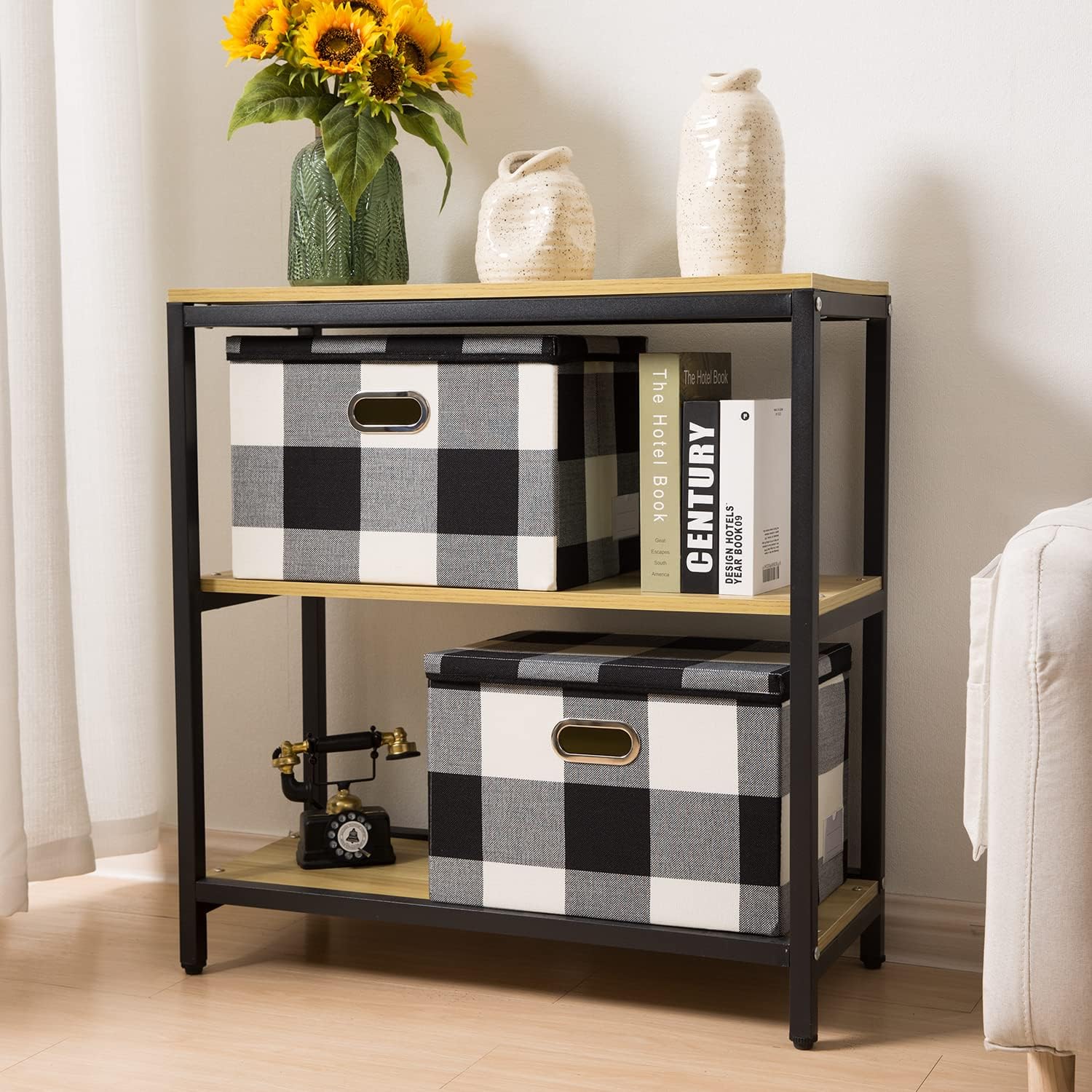 PRANDOM Large Collapsible Storage Bins with Lids [3-Pack] Fabric Foldable Storage Boxes Organizer Containers Baskets Cube with Cover for Home Bedroom Closet Office Black and White (17.7x11.8x11.8)