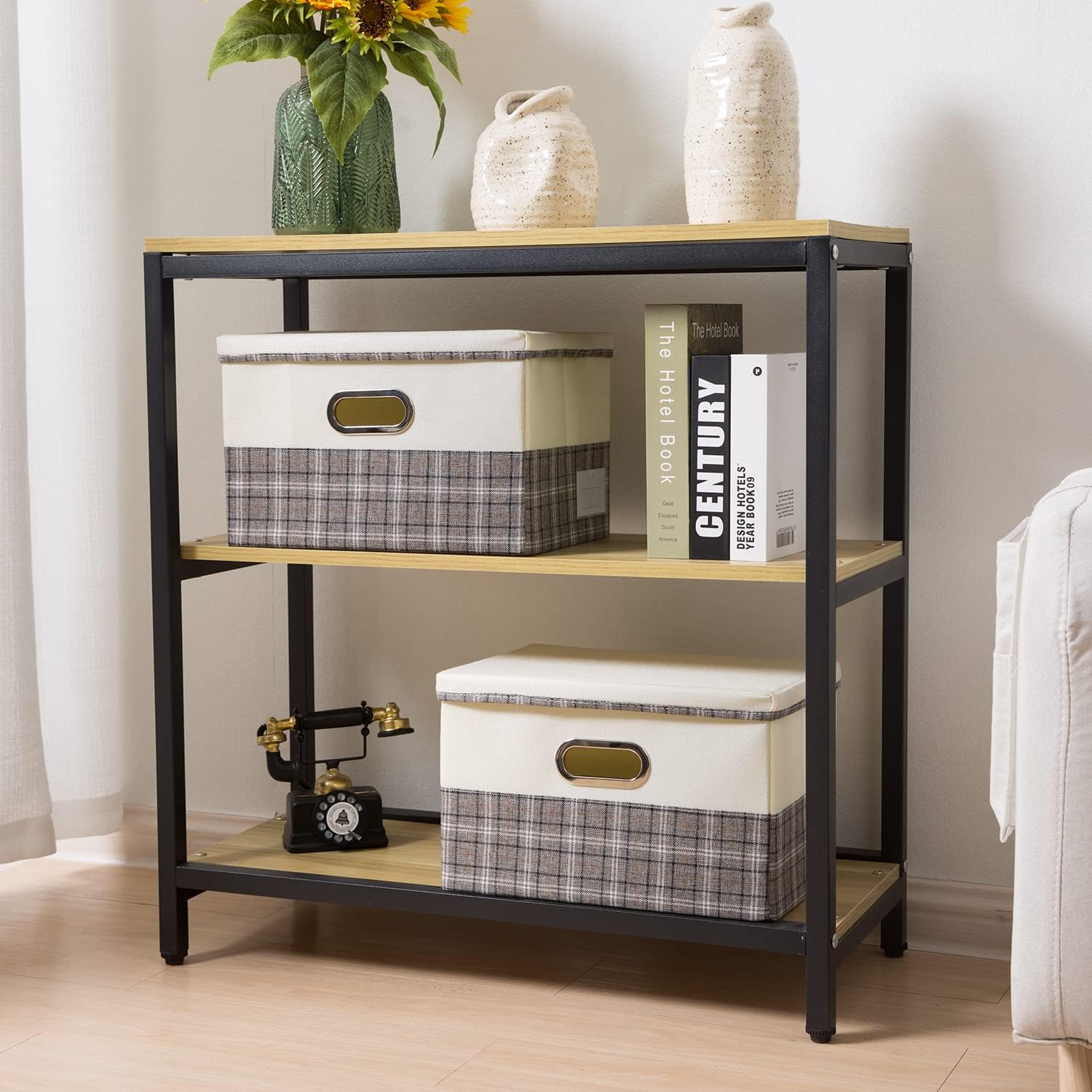 PRANDOM Collapsible Storage Bin with Lid [3-Pack] Fabric Foldable Storage Box Organizer Container Basket Cube with Cover for Home Bedroom Closet Office Nursery Gray plaid & Cream(14.9x9.8x9.8)