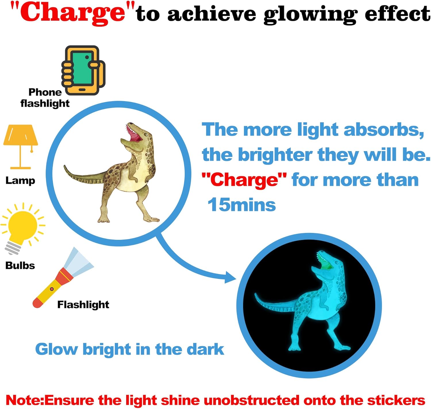 - ăRest Assured to Useă:We are glad to give much fun to you,Kids will fall asleep peacefully looking at these gently glowing decoration.If the dinosaur sticker will not stick, have a defect, broken or damaged, feel free to contact us we will solve it and satisfied you immediately.