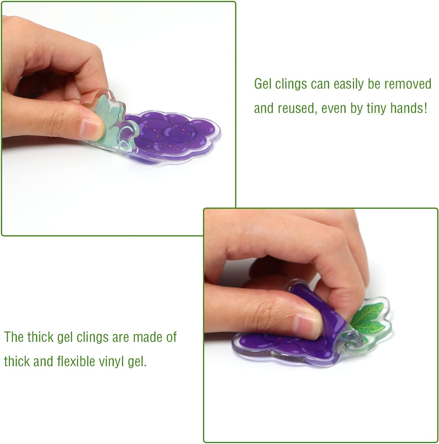 - Note:Fruits thick gel clings are not edible. These thick gel window clings are suitable for children 5 years and older to play, and there is a risk of suffocation. They need to be accompanied by an adult when playing.