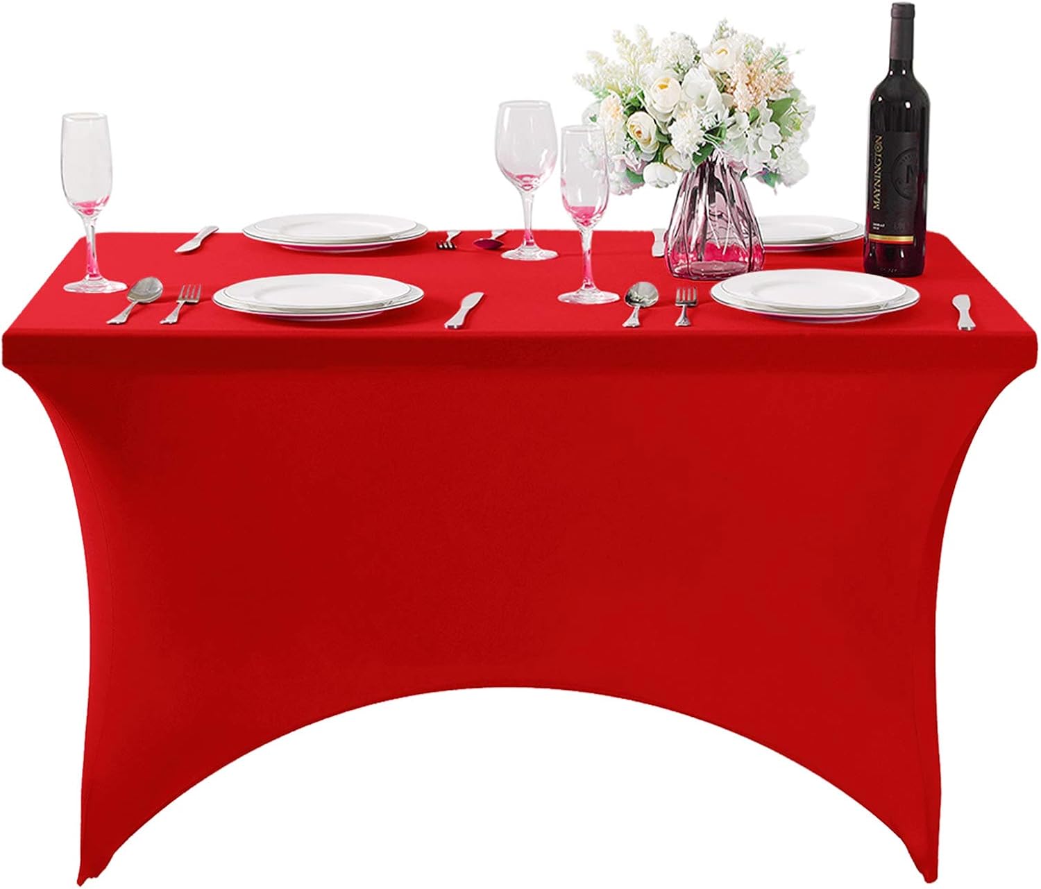 2Pack Spandex Table Cover for 4FT or 6ft or 8ft Table Universal Fitted Stretch Tablecloth for Party, Banquet, Wedding and Events-Red