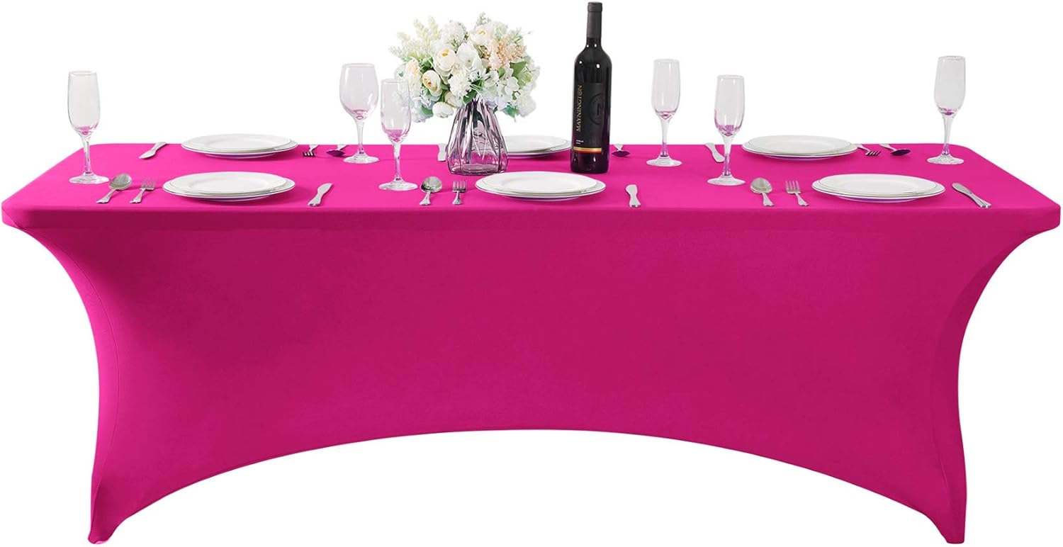 2Pack Spandex Table Cover for 6Ft or 4fT or 8ft Table Universal Fitted Stretch Tablecloth for Party, Banquet, Wedding and Events-Fuchsia