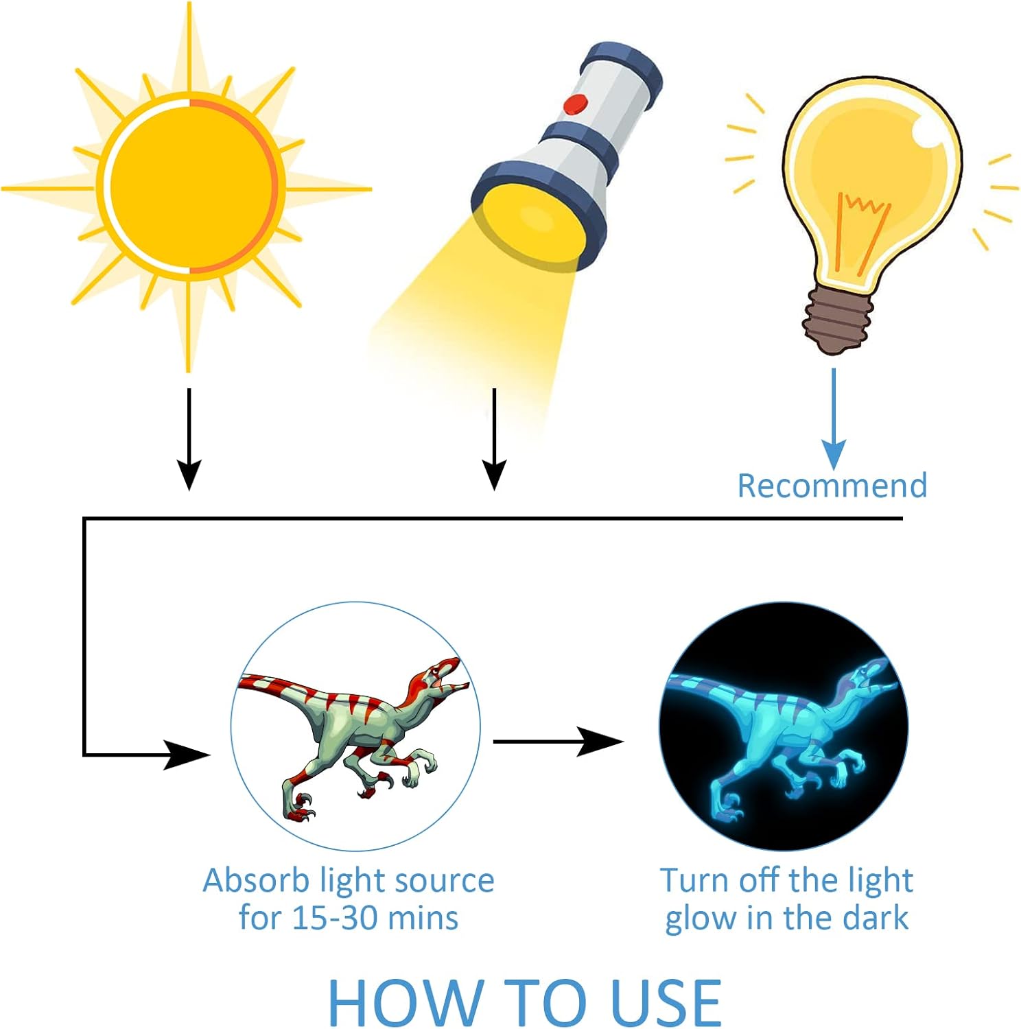 - đŠăLuminous Dinosaur Wall StickersăYou will get 4 pieces in a set, including 4 assorted dinosaur super bright luminous wall stickers to turn your kid's room into a realistic Jurassic dinosaur world. And soothe your child to sleep.