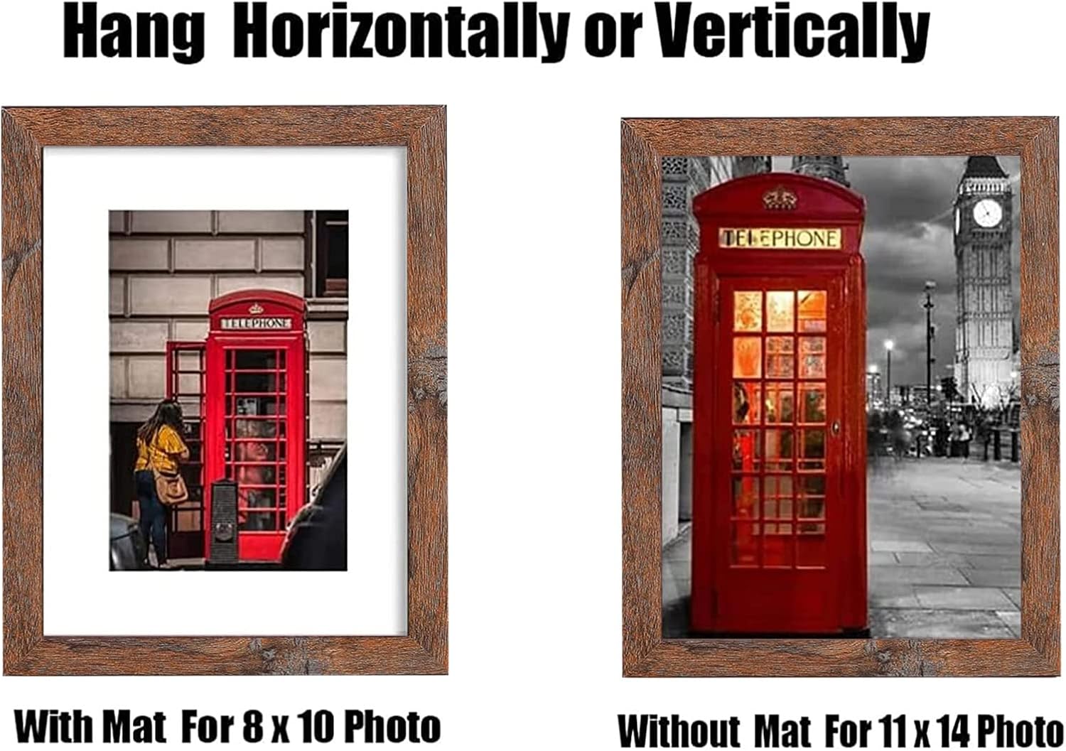 11x14 Picture Frame Set of 6, Display Pictures 8x10 with Mat or 11x14 Without Mat for Wall Mounting,Rustic Brown