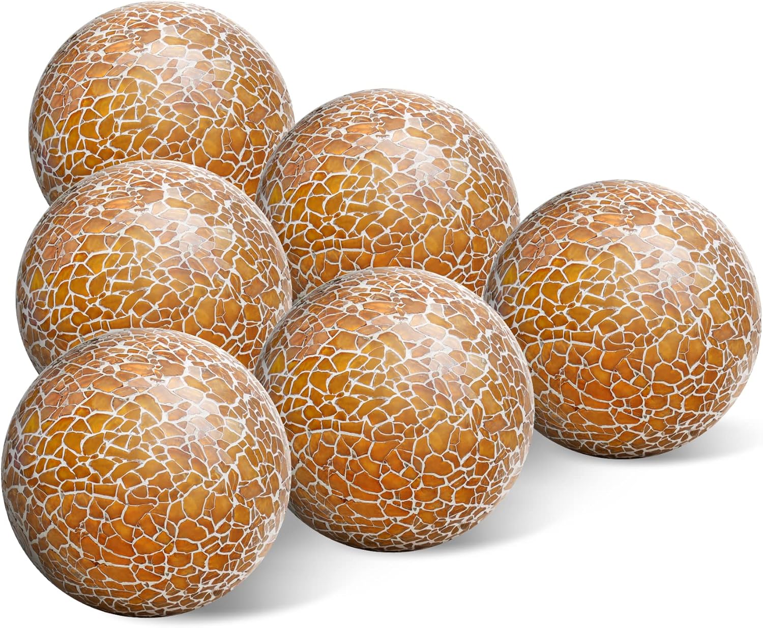 - Quantity and sizes:This product includes 6 brown Mosaic Sphere Balls Glass Decorative Orbs, each Glass Decorative Orbs 2.5inch, its glass finish can add a touch of color to your table Living Room Festival Party, durable and does not take up space.