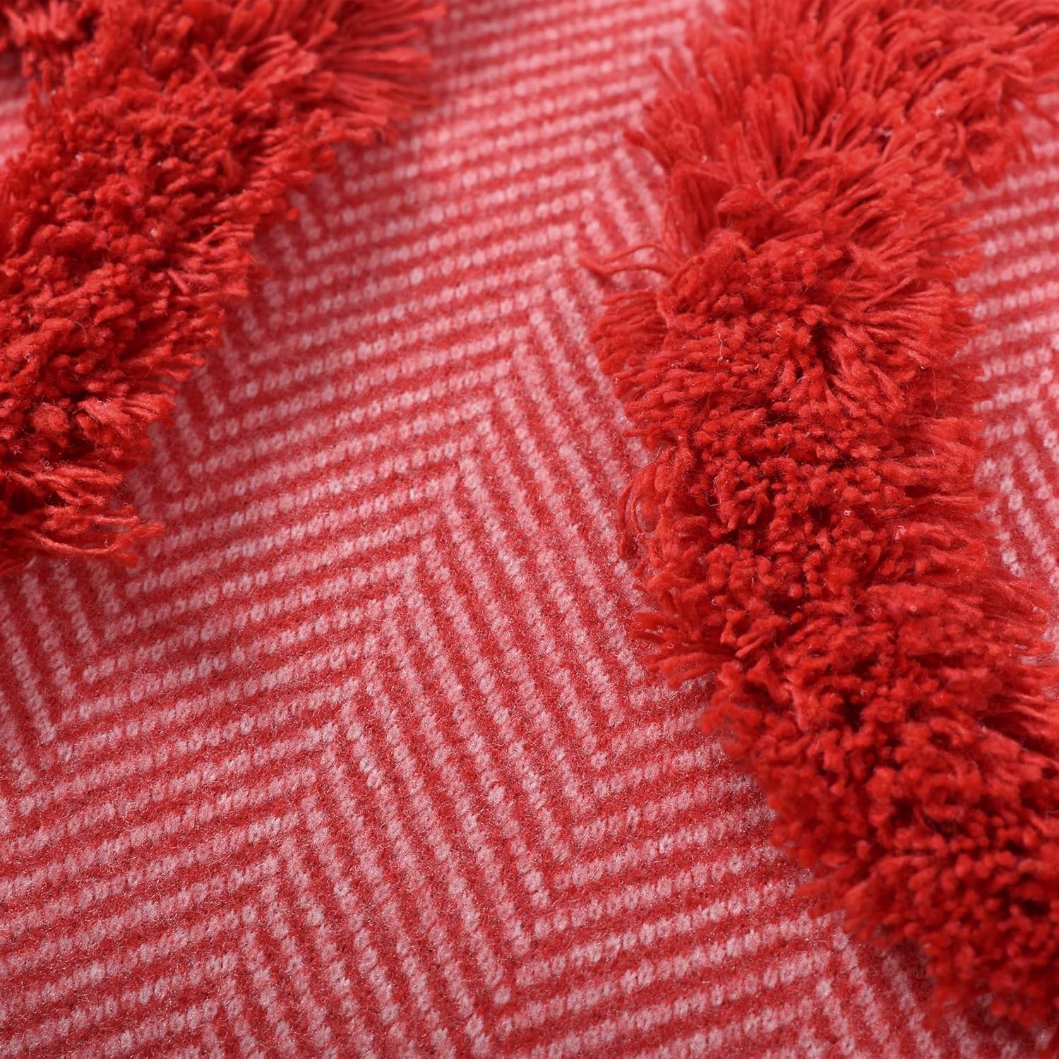 - 【Herringbone Throw Pillow Covers】Front: Red herringbone polyester woolen cloth, Reverse: 100% cotton red canvas