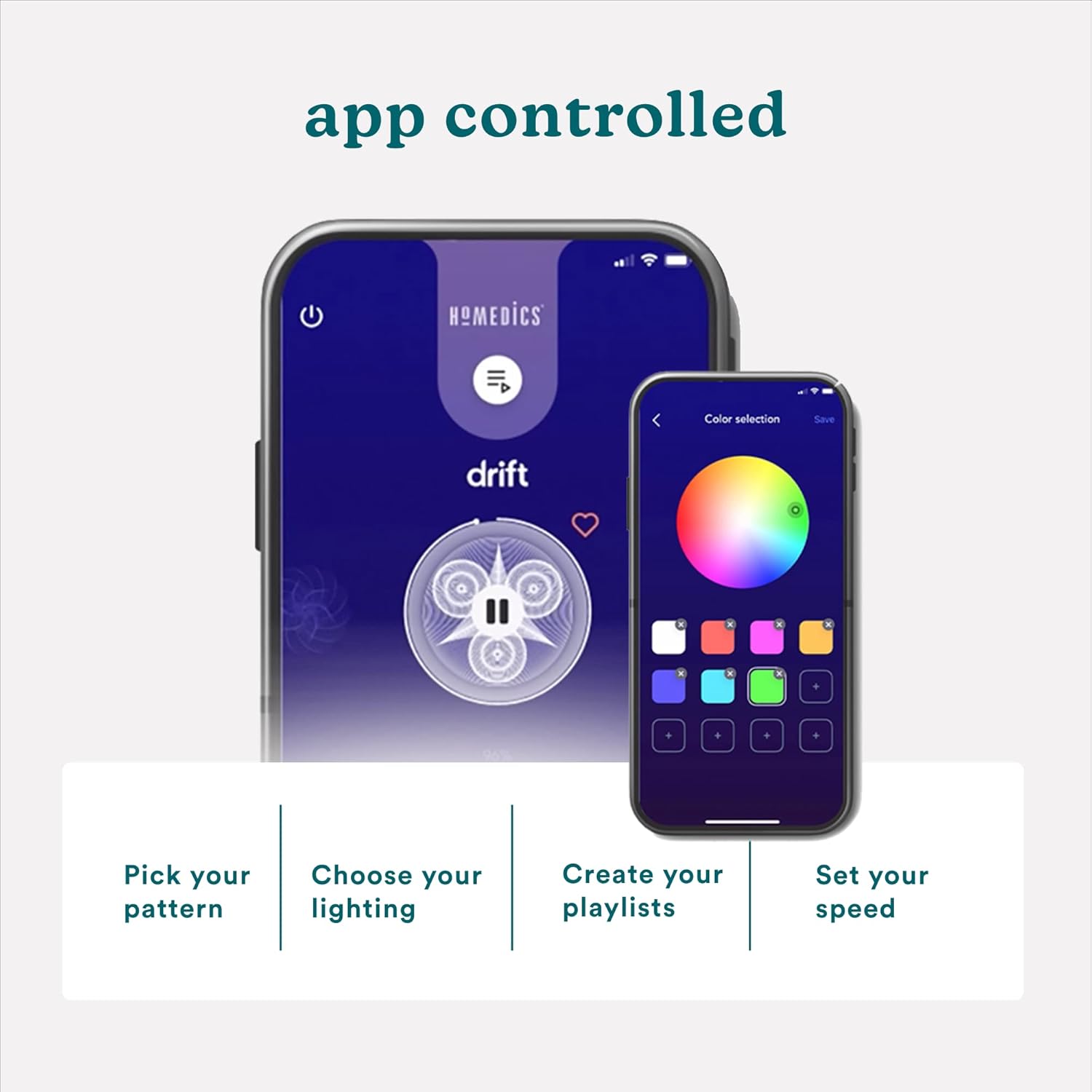 - Simple Setup: Easy assembly. Download the Homedics drift app or scan the QR code on the back of box.