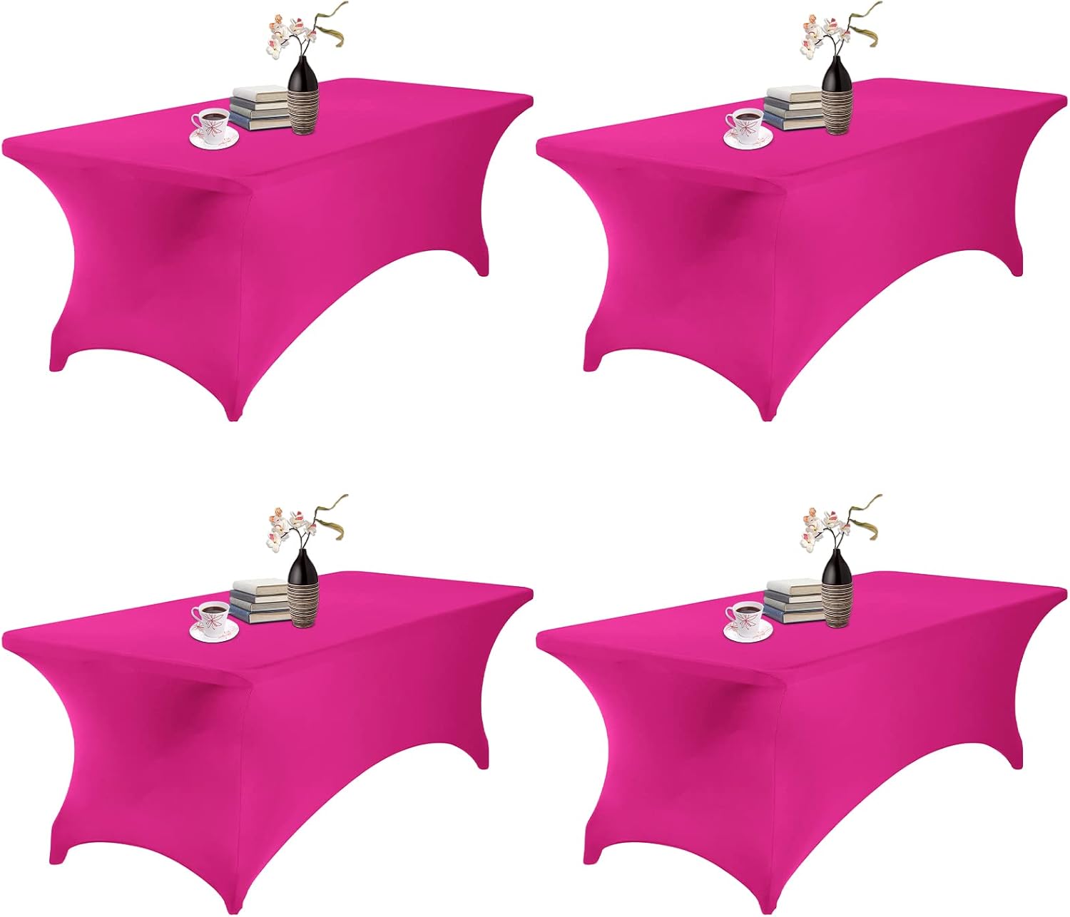 4Pack Spandex Waterproof Table Covers 8ft,Spandex 8ft Waterproof Table Cover for Party,Wedding, Banquet, and Events(Fuchsia)