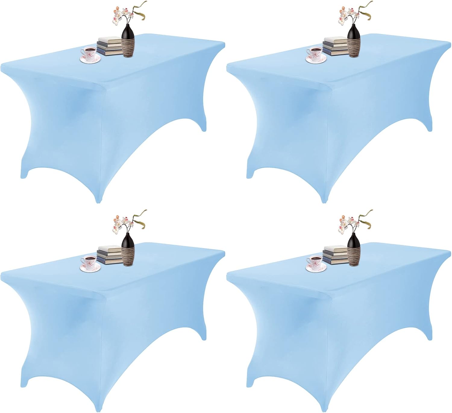 4Pack Spandex Waterproof Table Covers 6ft,Spandex 6ft Waterproof Table Cover for Party,Wedding, Banquet, and Events(Blue Mist)