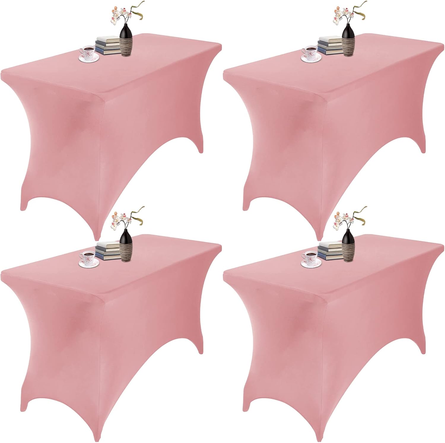 4Pack Spandex Waterproof Table Covers 4ft,Spandex 4ft Waterproof Table Cover for Party,Wedding, Banquet, and Events(Dusty Pink)