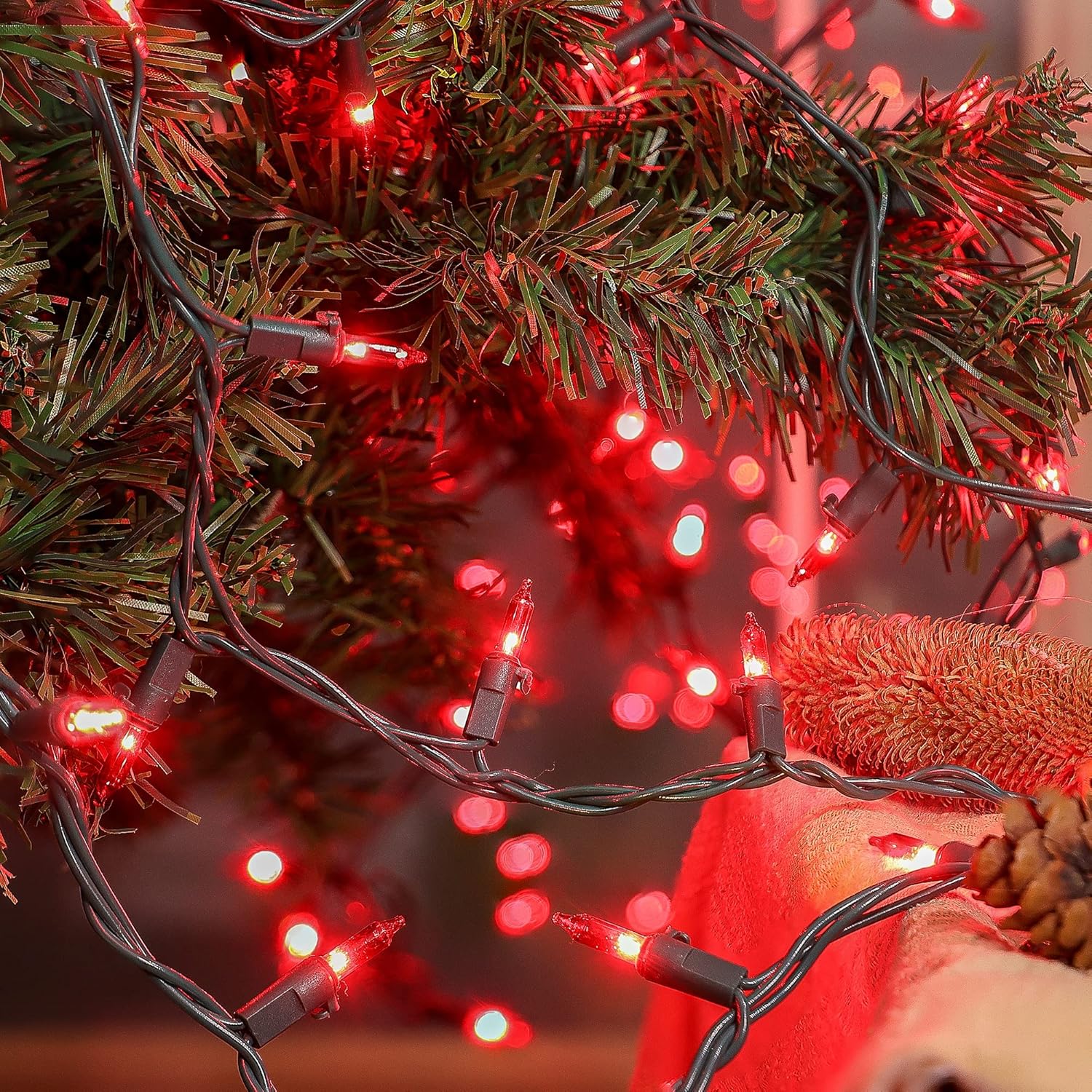 - 🎀50Count Mini String Lights: Light up the upcoming Christmas with Mimigogo 13ft 50count Red Christmas string lights is with Green Wire,which comes with 2Extra Bulbs and 2 Replacement Fuses. In addition, our wires is more durable compared with other string lights. You can use it for a long time without fear of burning it out.
