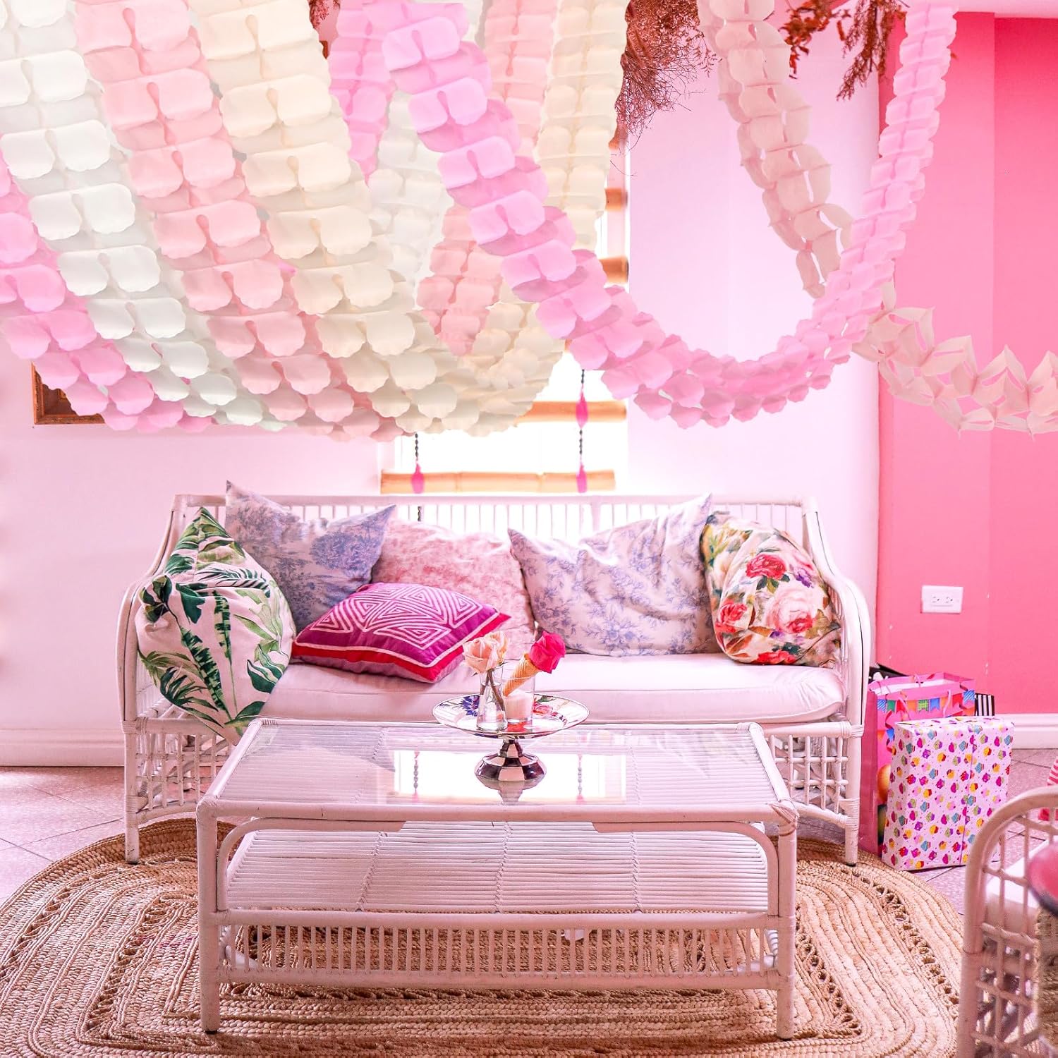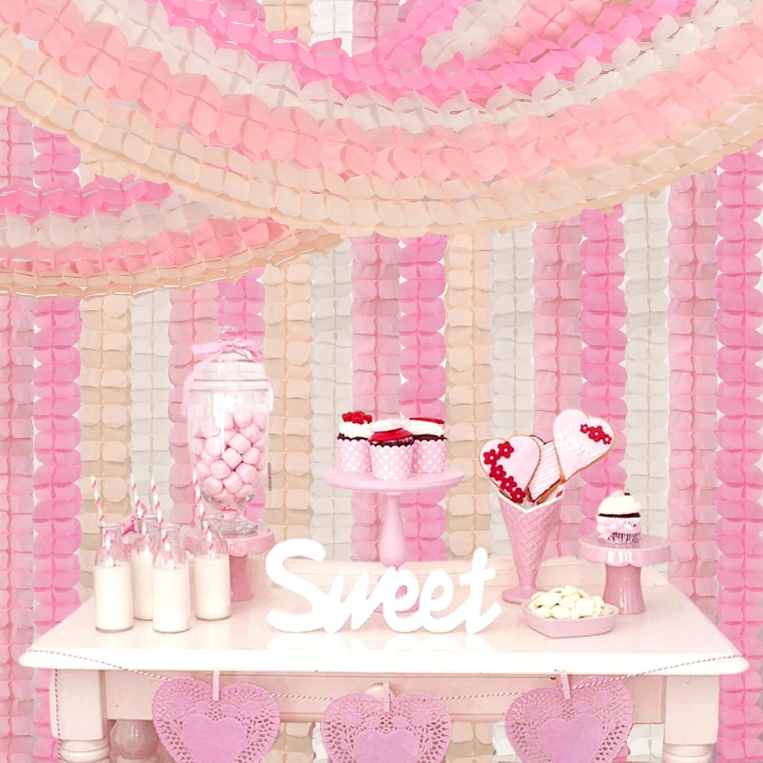Pink-White Peach Party-Decorations Streamers Garland - 157Ft Four-Leaf Clover Hanging Banner,Wedding Girl Birthday Baby Bridal Shower Engagement Bachelorette Decor Hugtmr