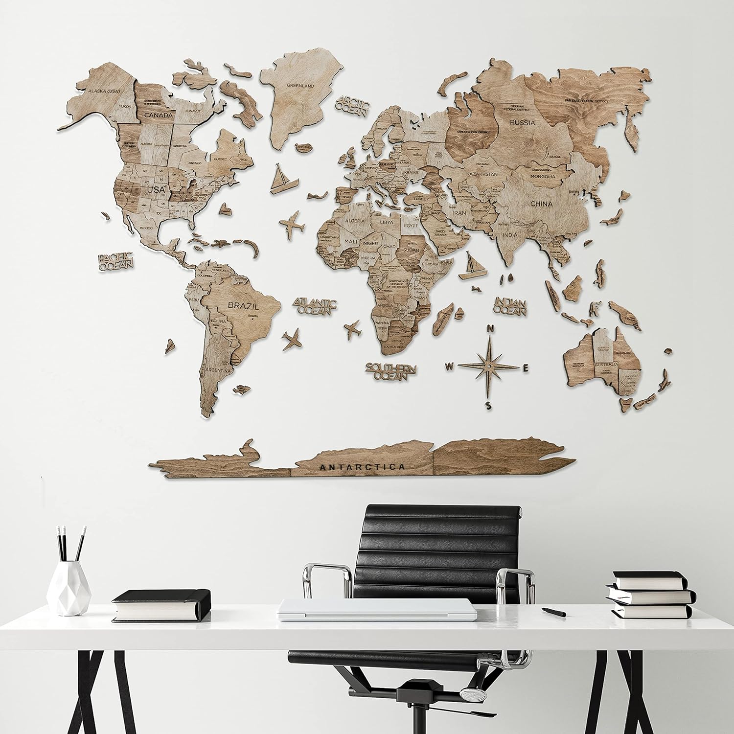 - Complete With Add-On Items: Unlike similar products on the market, this wall map comes with a wide variety of add-ons included in the box. Create a perfect wall display with ocean names, wooden airplanes, boats and compass, looking stunning in your bedroom, kitchen or office!