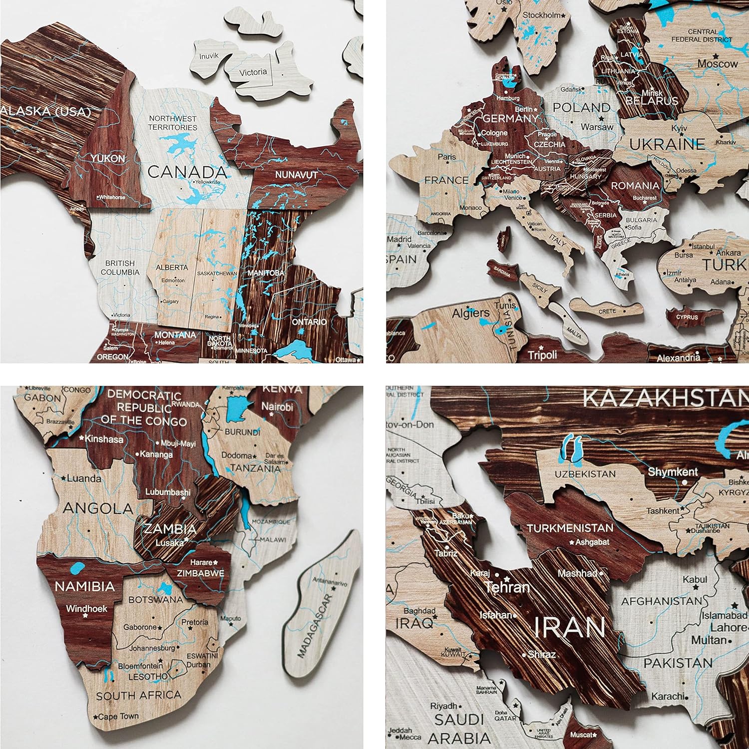 Handmade 3D Wood World Map Wall Art Large Wall Decor Track Your World Travels - Special For Home, Kitchen And Office (X-Large, Cappuccino)