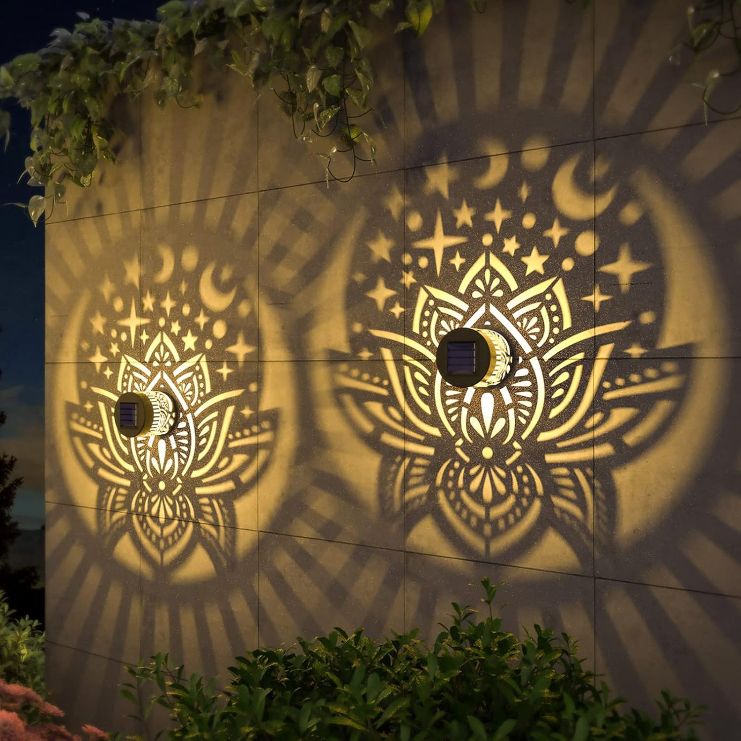 - Good Decoration: 10 lumens of warm yellow light. The small fence solar lights can project a unique and beautiful lotus pattern. In a dim environment, the solar lights can illuminate a corner of the fence or the wall and create a beautiful and warm atmosphere. They are very suitable as holiday decorations and gifts for relatives and friends