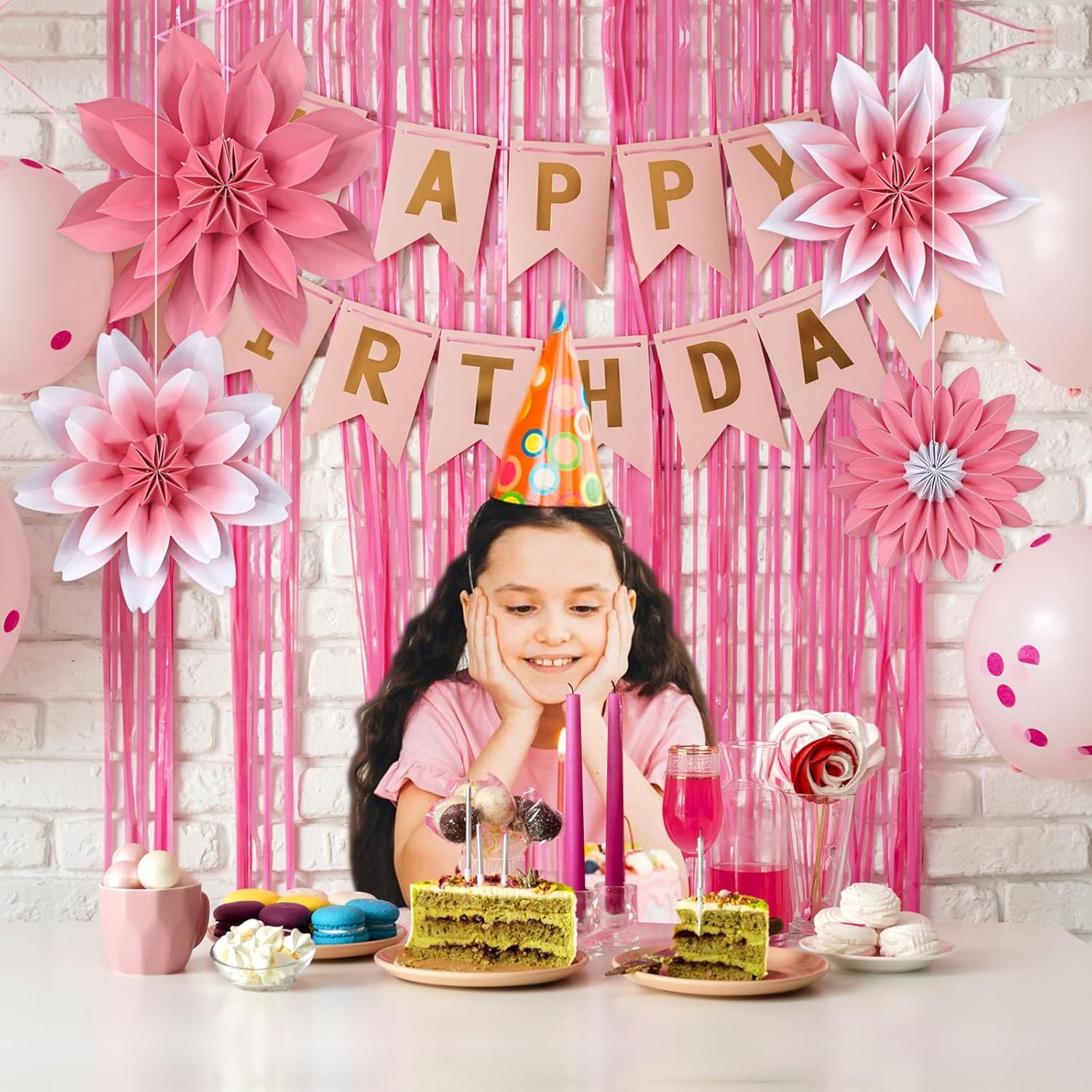 - 【Package contents】Hanging paper flower fan party decorations set of 4 15.7/11.8/11.8/9 inch pink paper flowers. Create a gorgeous visual display for your home and delicate flowers create a stunning backdrop for your party