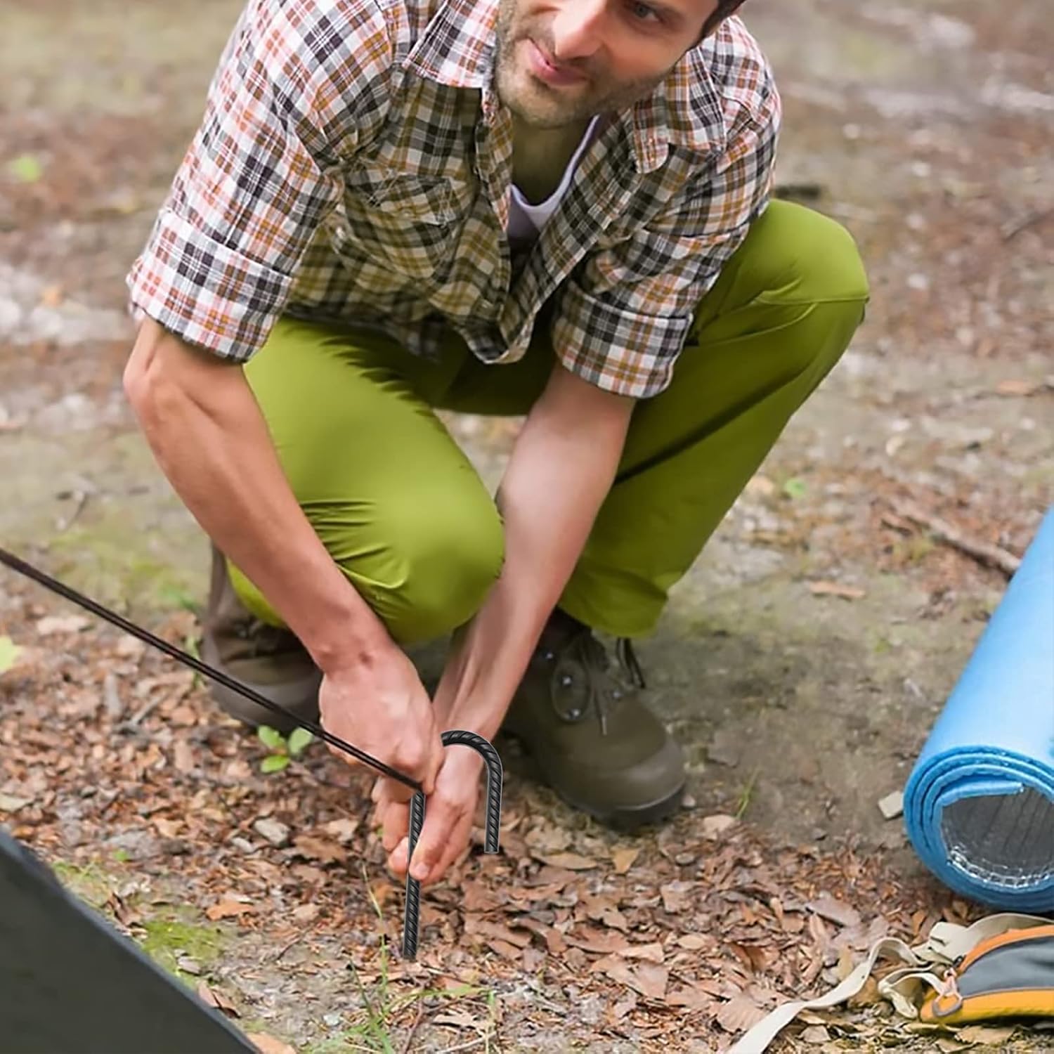 - PACKAGE INCLUDED - Set of 10 Steel rebar ground anchor stakes. Each J Hook stake is approximately 24" long; 0.47" (12mm)diameter;And hook is 5.12" (13cm) in length 2.48" (6.3cm) in diameter.The stakes has an extra-long length and a thickness that benefits, which means it can be inserted deeper and fixed more firmly.
