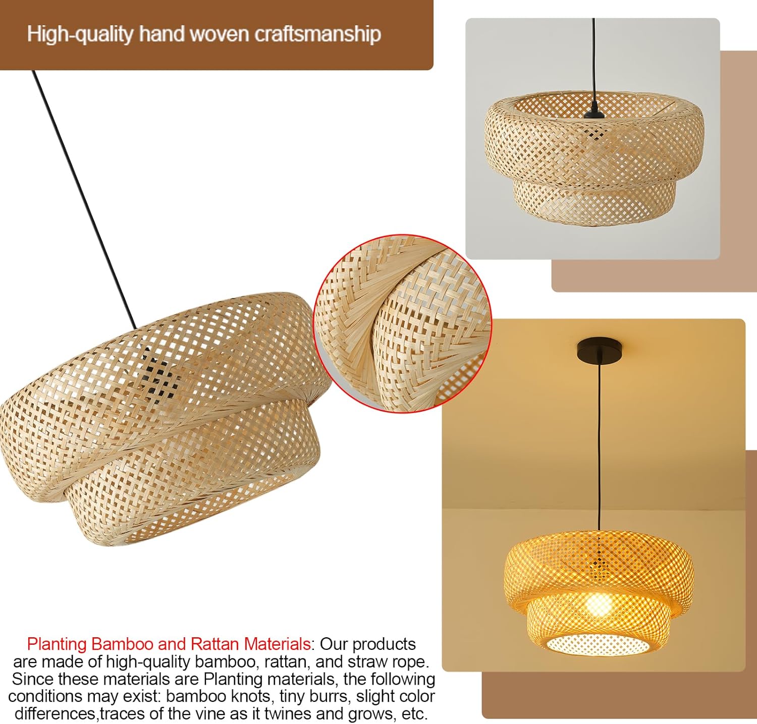 - 【Excellent Design】Bamboo/wood/rattan, the pendants are made of natural materials. The lights are hand woven with natural bamboo by superb skills bamboo artists. Decorated with classic tropical style elements, creates a wonderfully new look