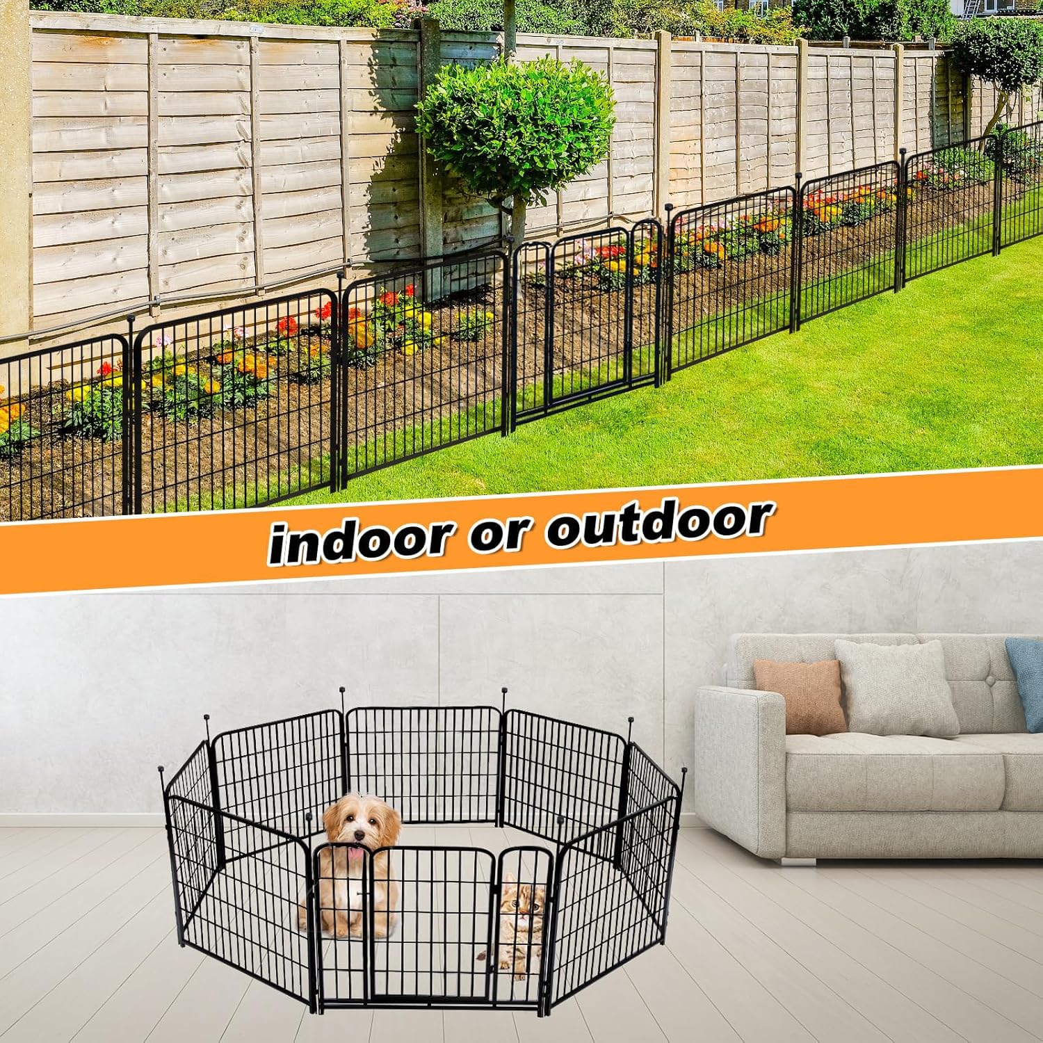24 in(H) Decorative Garden Fences with Gate, 8 Panels Total 15.7 ft(L) Heavy Duty Iron Animal Barrier Fence for Yard,Suitable for Indoor Pet Fence Or Outdoor Dog Fencing, Garden Border Fence