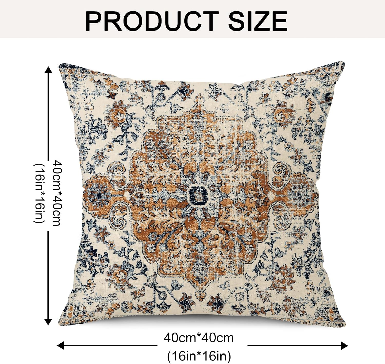Outdoor Waterproof Pillow Covers 16x16 Inch Set of 2 - Bohemian Vintage Carpet Pattern Gold Blue Ethnic Design Decorative Farmhouse for Couch Garden Balcony(40cmx40cm)