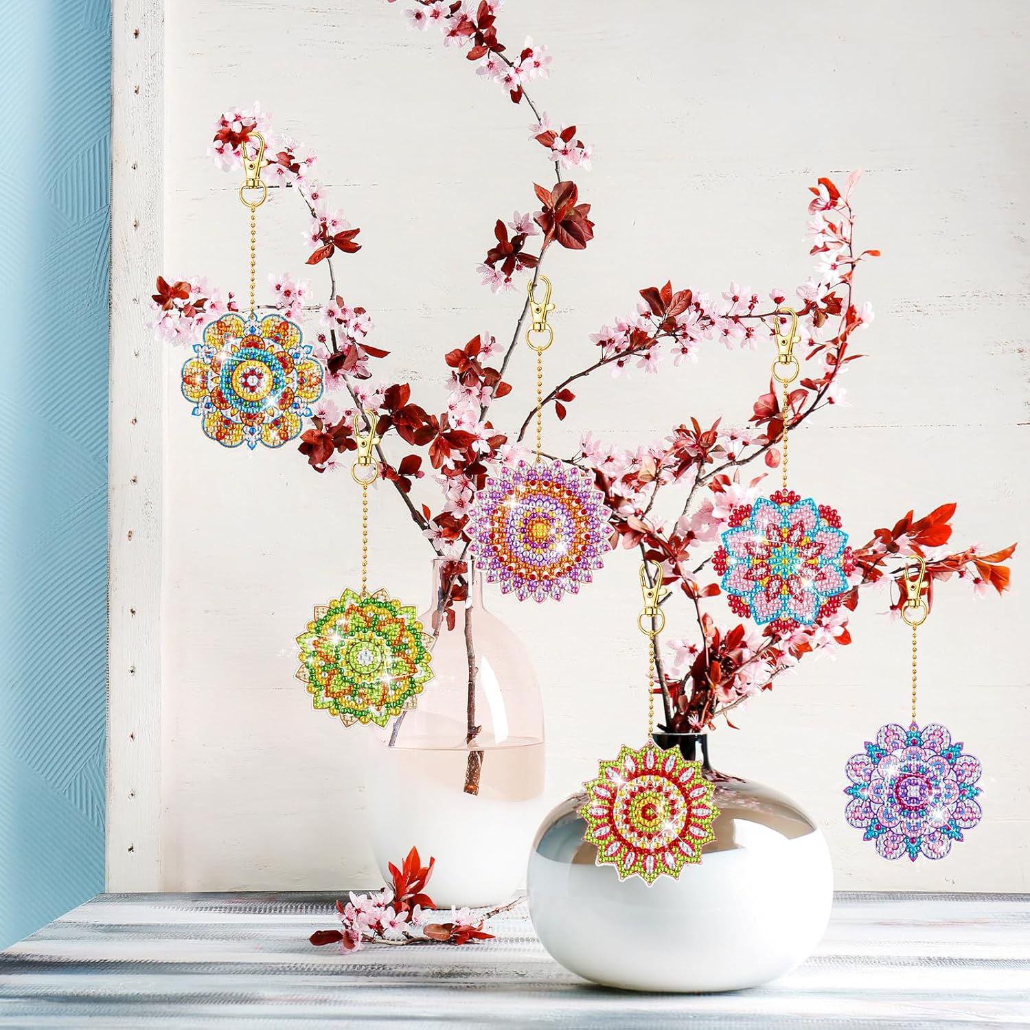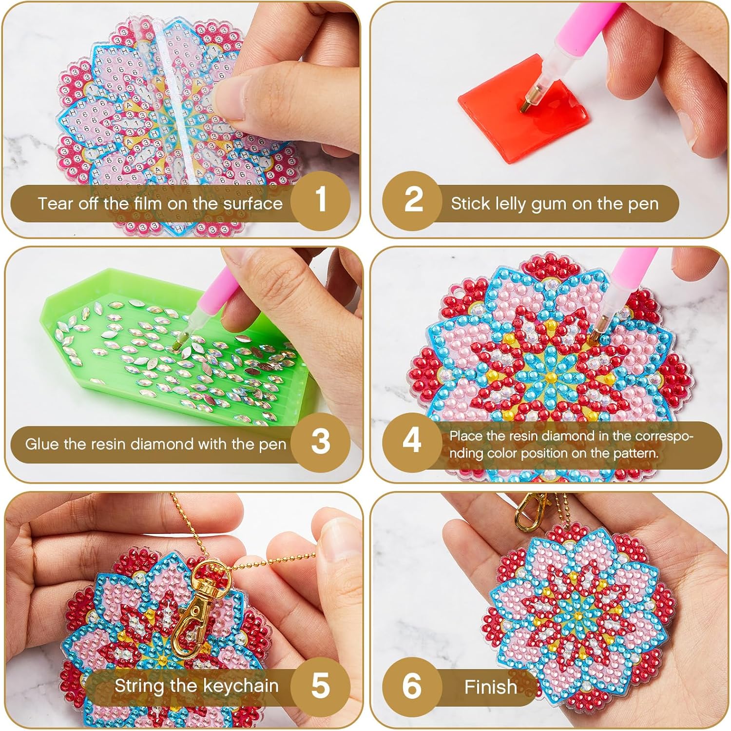 - Easy to Use: these diamond art keychains are simple to use, you just need to put the corresponding diamonds according to the pictures, to finish the DIY process one by one, to get your own mandalas shaped diamond painting keychains