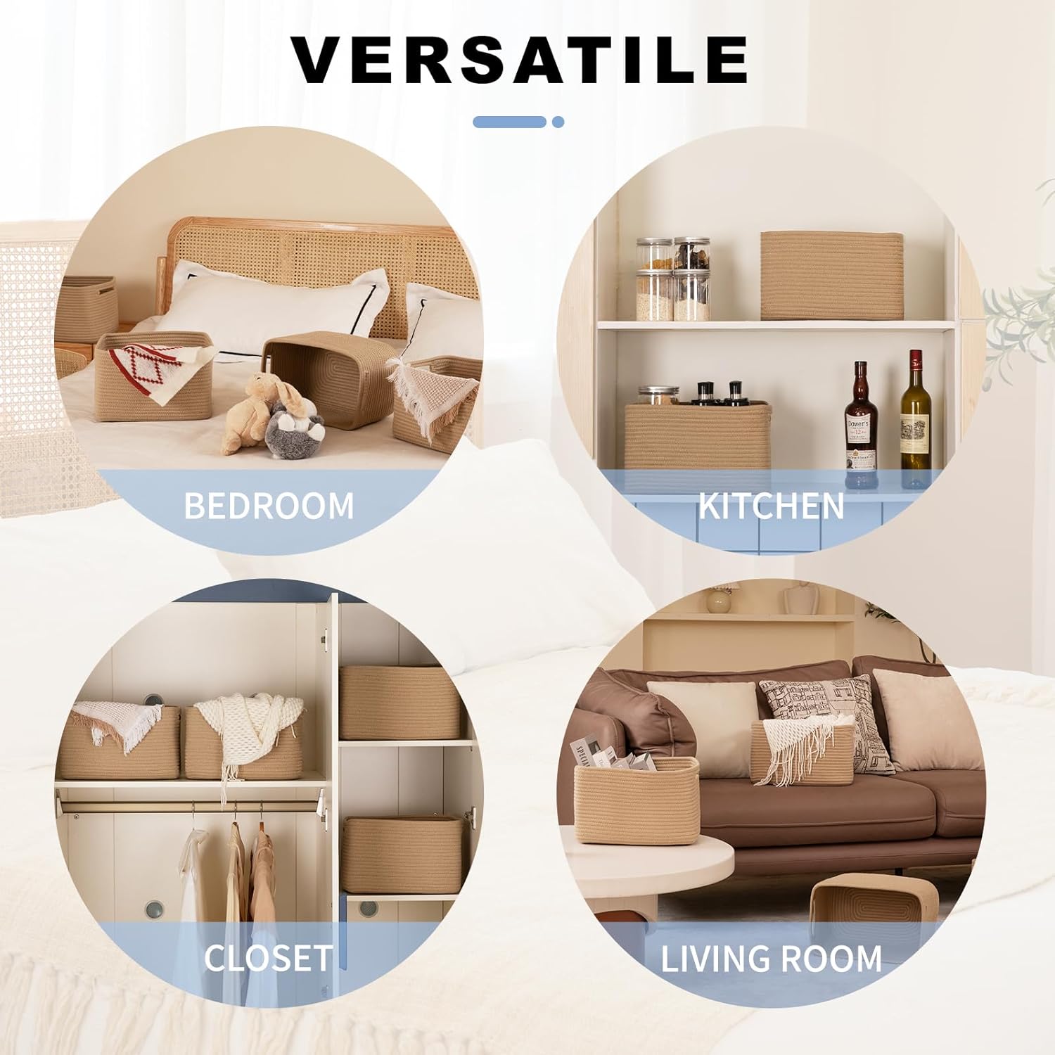 - Stylish and Elegant: SIXDOVE Cotton Rope Storage Basket. The woven design of these baskets adds a touch of rustic charm to any room decor, making them a perfect addition to your living room, bedroom, bathroom, or nursery. These cube rope storage baskets enhance any room or decor of your home