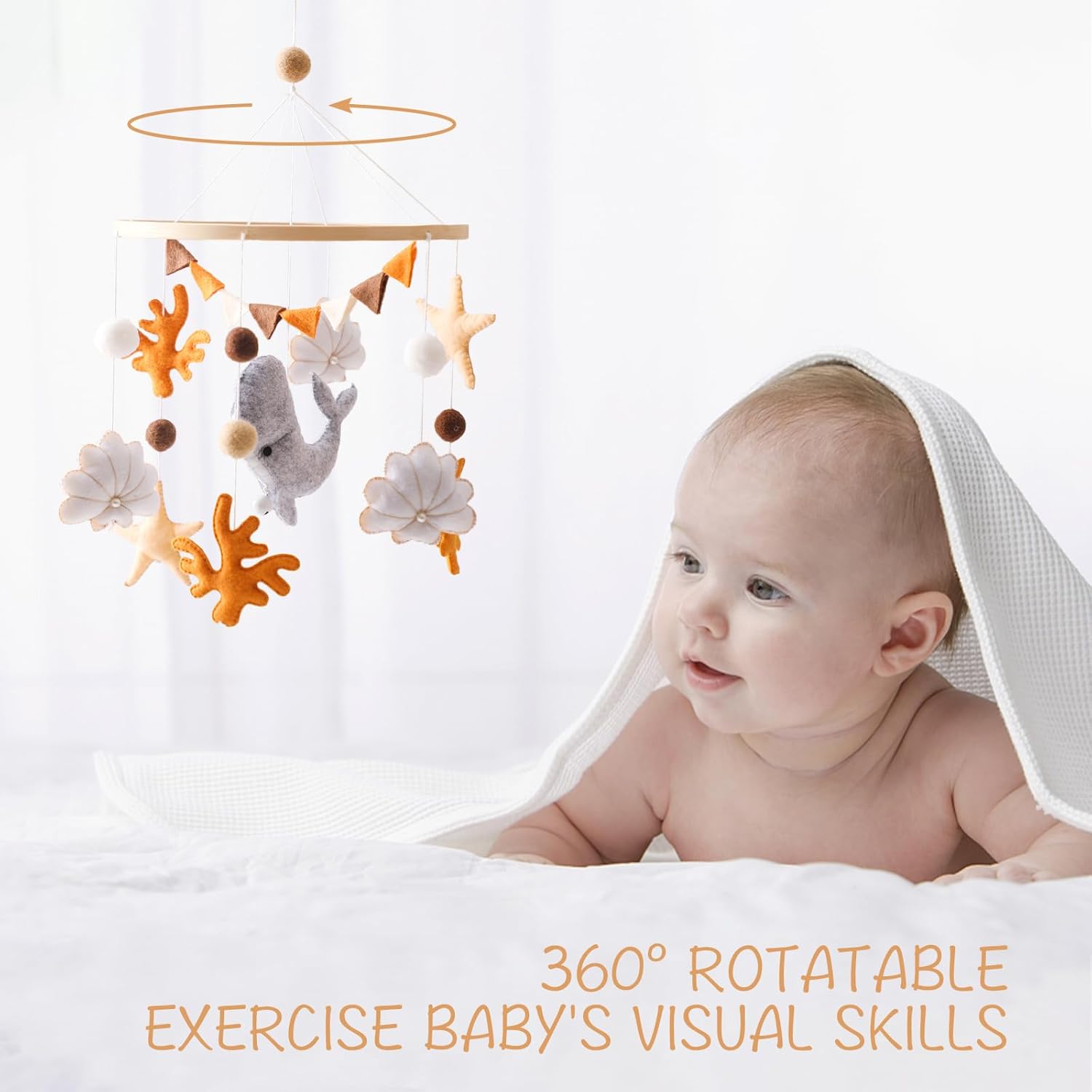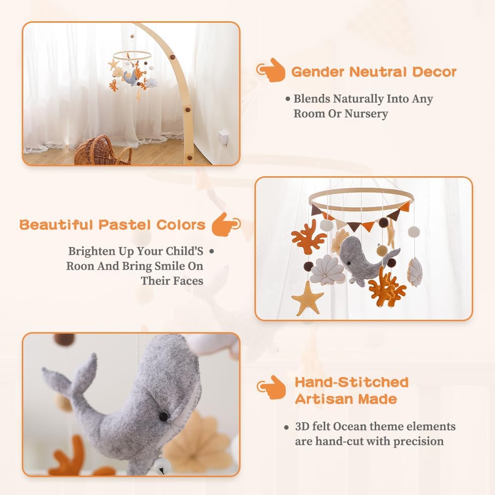Baby Mobile for Crib - Ocean Animal Baby Mobiles - Baby Nursery Mobiles with Handmade Soft Felt Whale - Woodland Nursery Decor Toys for Ceiling Hanging | Perfect Baby Shower Gift for Baby Boys Girls