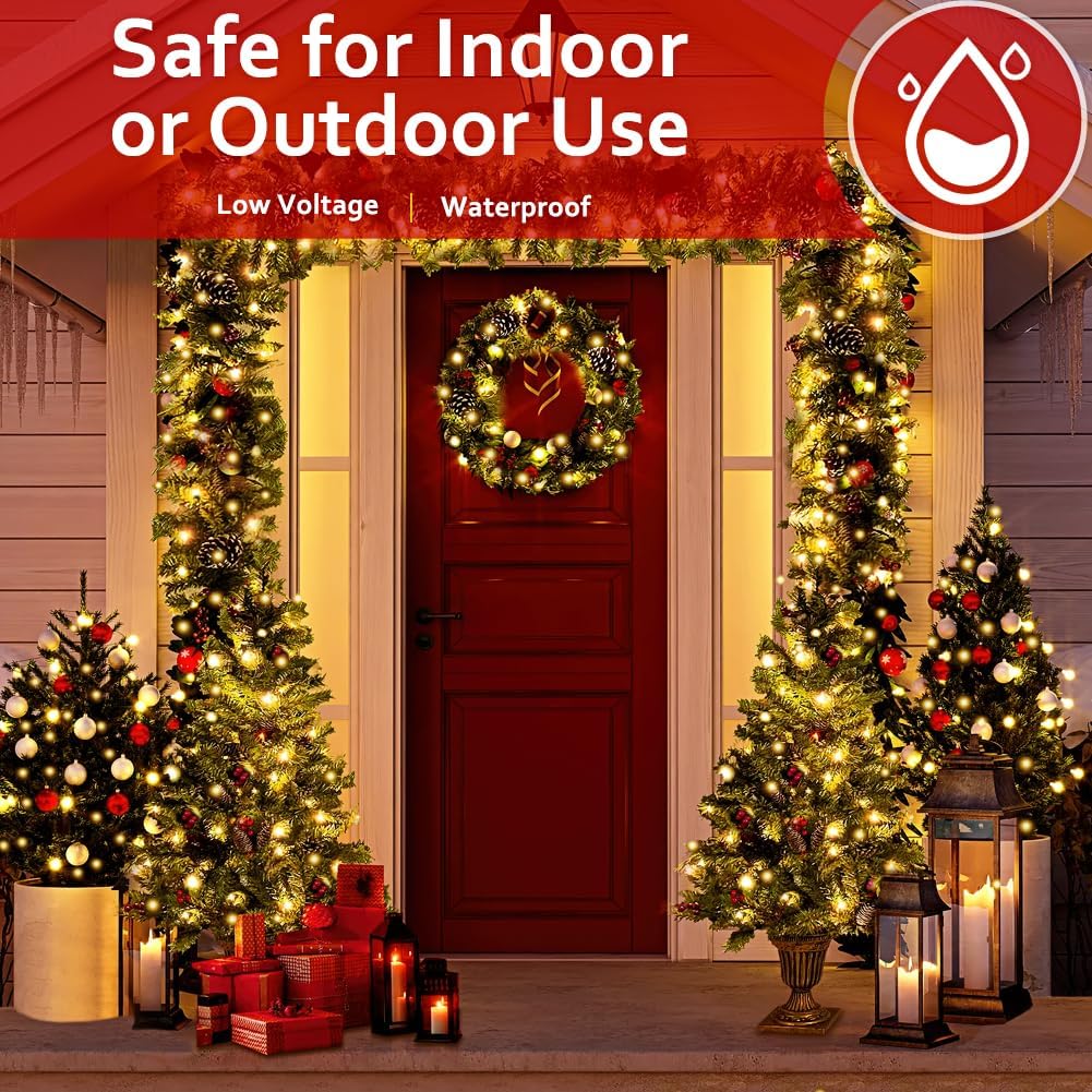 - 100ft Christmas Lights Outdoor :Our 300 LED Warm White Christmas Lights 100 ft can decorate your bedroom, garden and courtyard,for Xmas party scenes, holidays,hotels, parks, restaurant or outdoor display.With Plug in indoor christmas lights for tree green wire are more natural and suitable for winter using