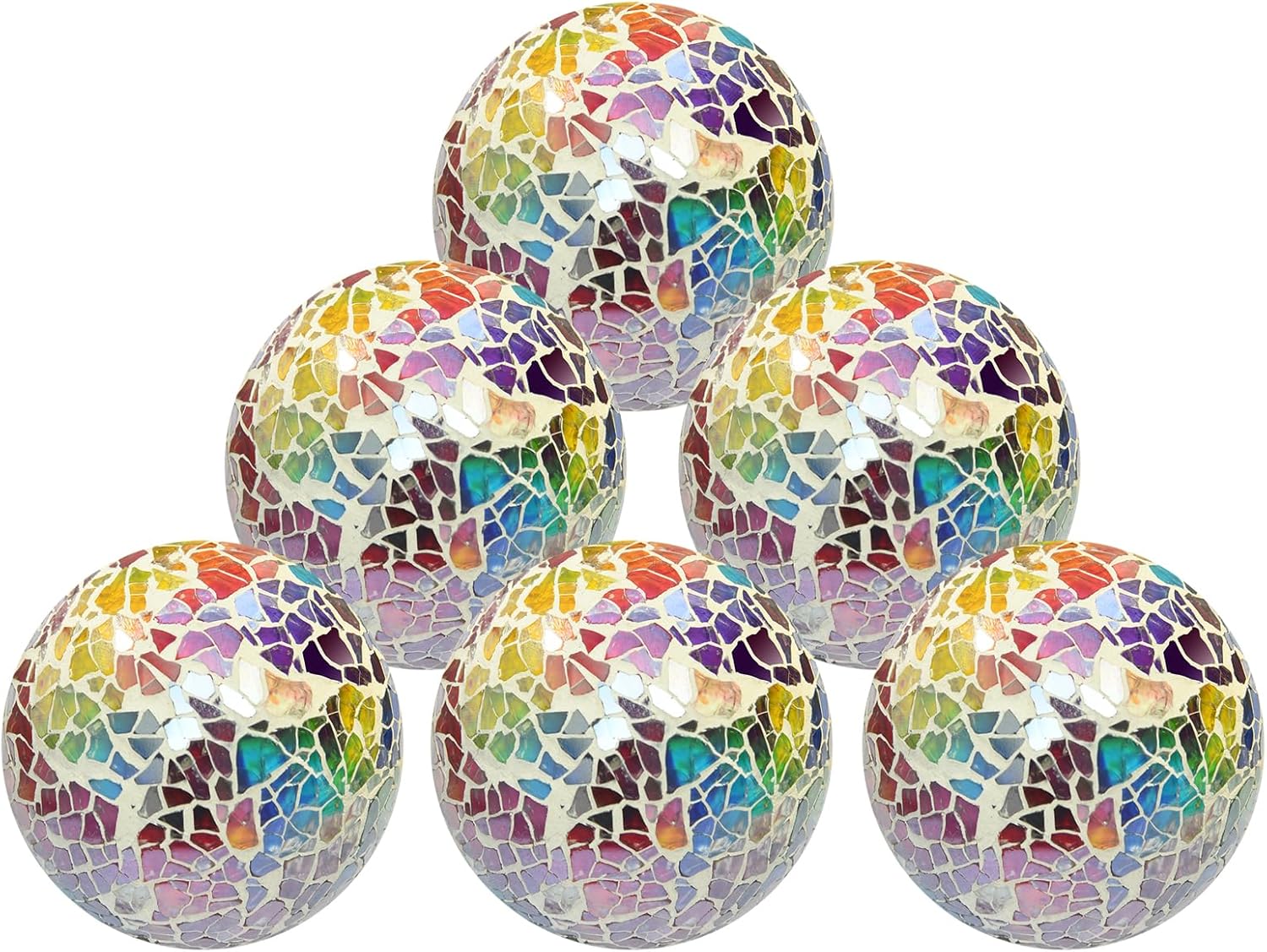 6pc Decorative Ball Set - 6cm Mosaic Glass Orbs Centerpiece Balls for Decorating Bowls, Vases, Tables & Wedding Parties (Colorful)