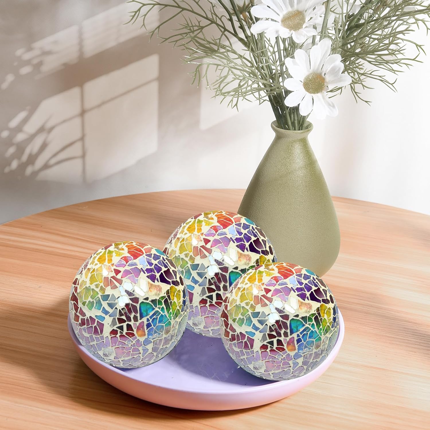 - PERFECT DESIGN: The glass decoration ball is mosaic style. The carefully designed glass mirror can reflect light from different angles, and you will be amazed by viewing it from any angle. These decorative balls are full of modernity, decorating them in your home can create a unique atmosphere and reflect your good taste.
