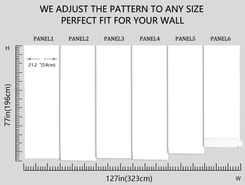 - Our mural is 77 inches tall and 127 inches wide, and to make it easier to transport over long distances, we have divided the width into six panels of 21.2 inches each, with a numerical serial number under each section to make installation easier!