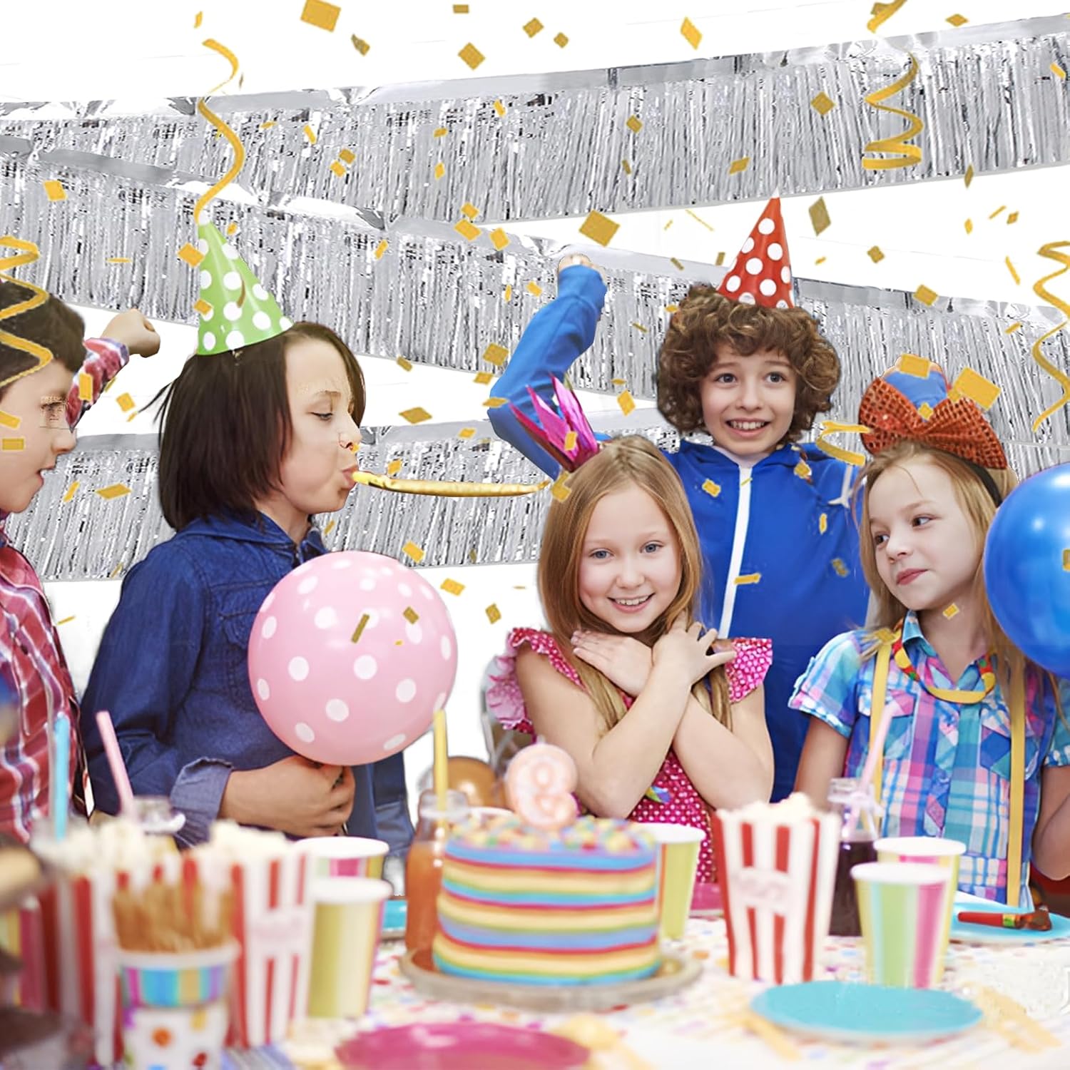 Silver Foil Fringe Garland 10FT 6packs, Metallic Foil Tinsel Fringe Banners for Parade Float Decorations Wedding, Birthday Party Graduation (six Silver)