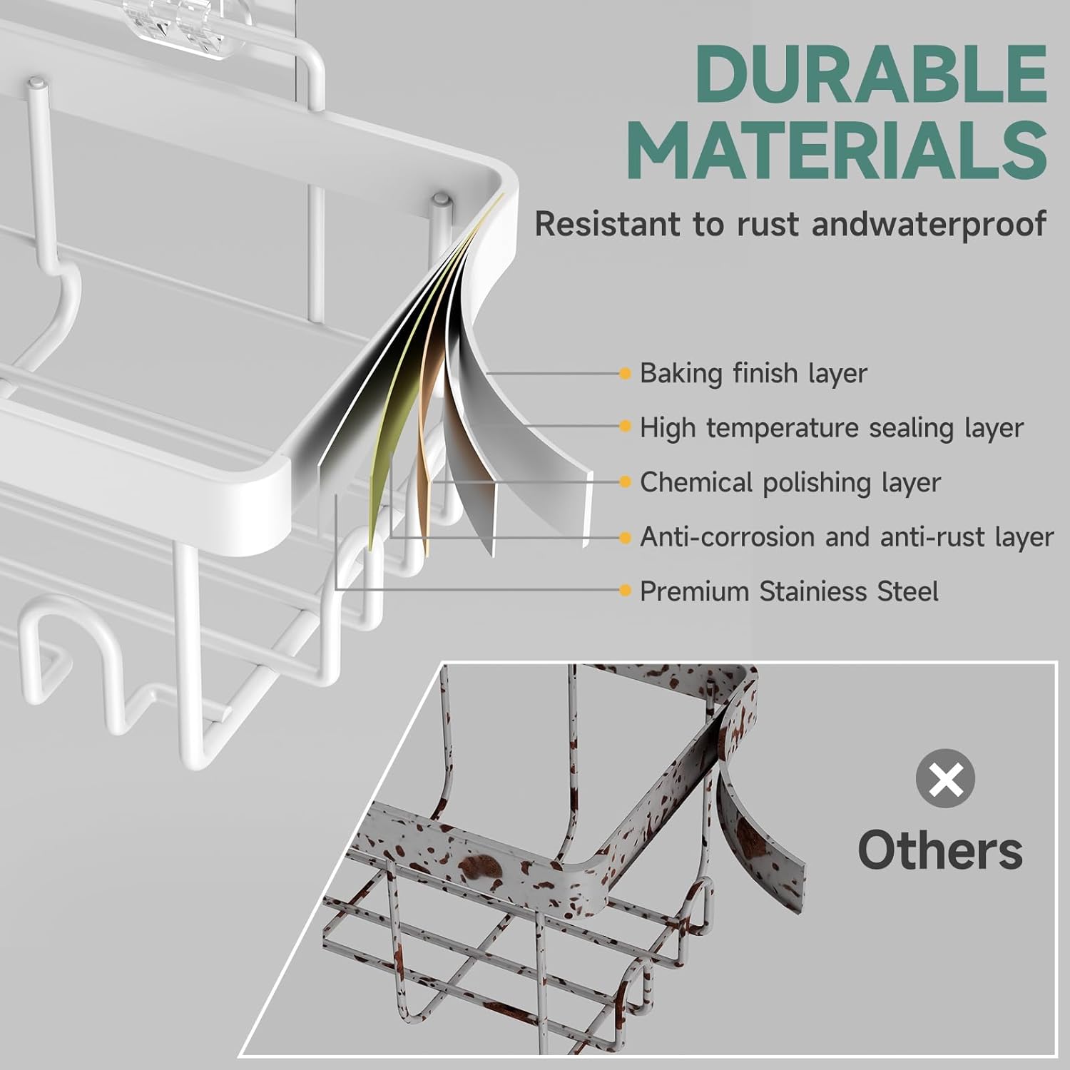 - Waterproof & Rust-Resistant: Engineered with waterproof and rust-resistant components, this caddy maintains its quality and appearance over time, even in damp environments