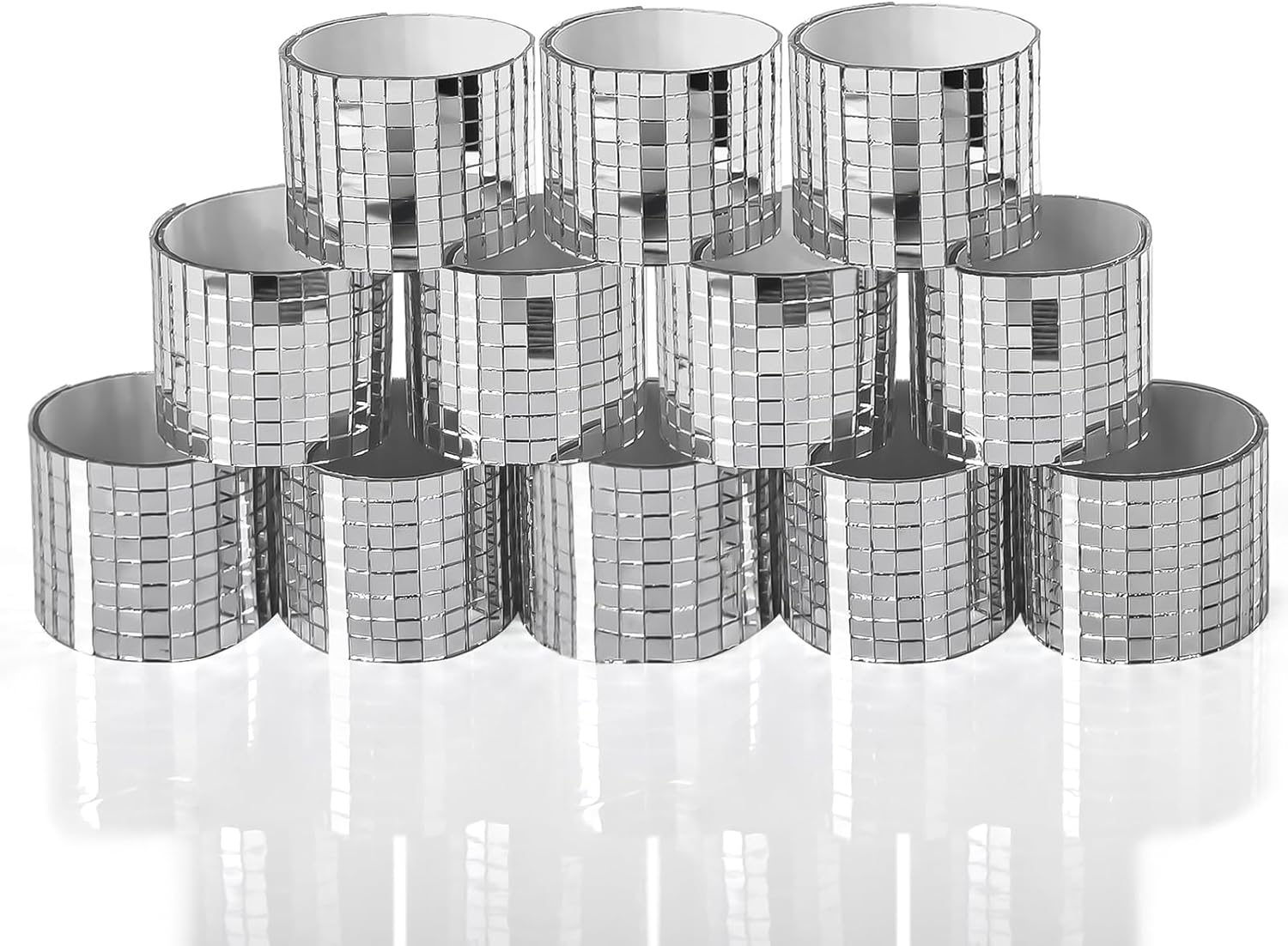 Art3dwallpanels 12 Pack Self-Adhesive Glass Mirror Mosaic Tiles 4728 Pieces Small Square Mirror Tiles Sticker for DIY Craft Decoration, Disco Ball Silver
