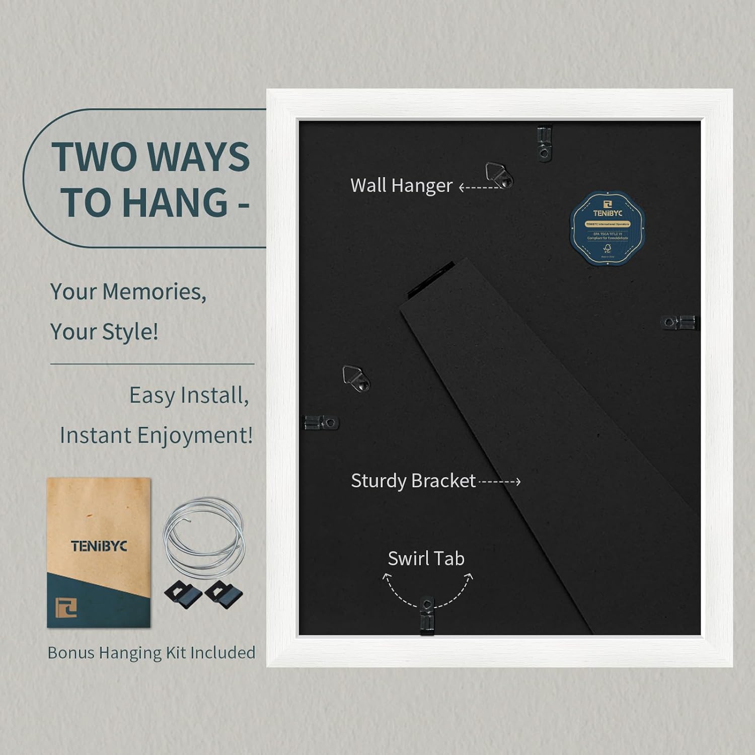 - Conscious Craftsmanship: Witness TENIBYC's dedication to sustainability and uncompromised quality. Our sturdy, enduring frames are our vow to Mother Nature. Reinforced corners and backboards ensure your treasured memories are elegantly preserved forever.