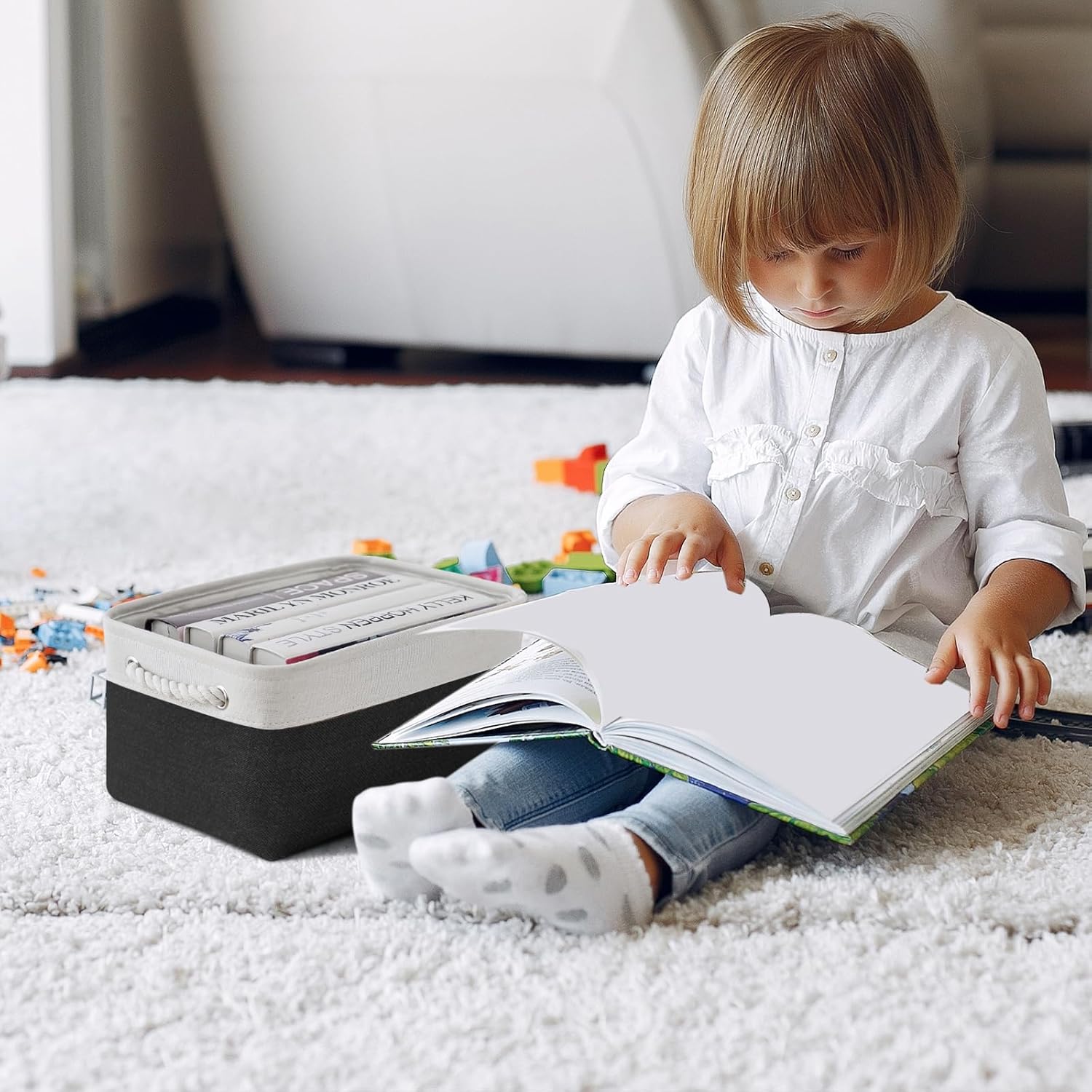 - STORAGE BIN & PROFESSIONALLY & PRACTICAL - 13.8Lx9.8Wx6.7H; TheWarmHome cube storage bins provide a solution to most needs: organizing and storing baby products,clothes,shoes,kid’s toys,pet products, toiletry storage, laundry,towel, blanket, bedsheet, sport gears, tissue,hats, scarves,socks,keys or other small items.can be used in bedroom, living room, study room,rest room,bathroom, kitchen,office,shelf, closet and cabinets.excellent choice for keeping your space nice, tidy and organized
