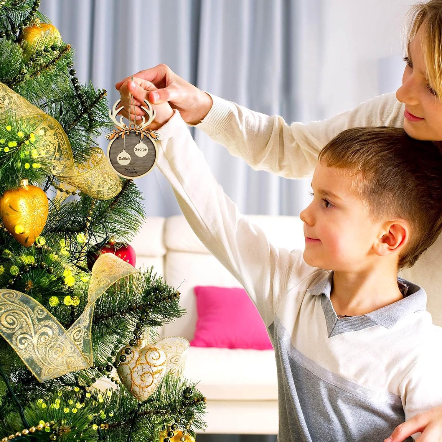 2025 Personalized Christmas Ornaments Family of 2/3/4/5/6/7/8,Custom Reindeer Christmas Wooden Ornaments Deorations with Names,Customized Xmas Ornament Tree Deorations,Personalized Xmas Gifts