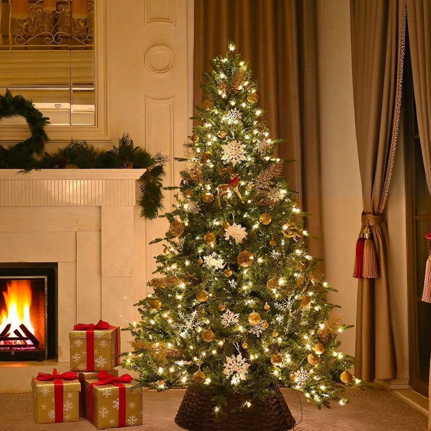 - Built to Last: Designed with flame-retardant PE & PVC materials, sturdy metal hinges, and a strong base, this 7.5 foot Xmas tree is made to shine year after year. Suitable for indoor use or a shaded covered porch—just avoid direct outdoor exposure. Stability and safety come built in, so you can focus on celebrating